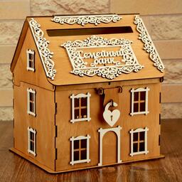 Чтобы это выглядело более торжественно, вам поможет семейный банк. Гости будут складывать в него конверты с деньгами, а красивый банк простоит под охраной новоиспечённой семьи всю свадьбу.