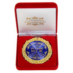 Медаль в бархатной коробке "Лучший муж на планете", диам. 7 см