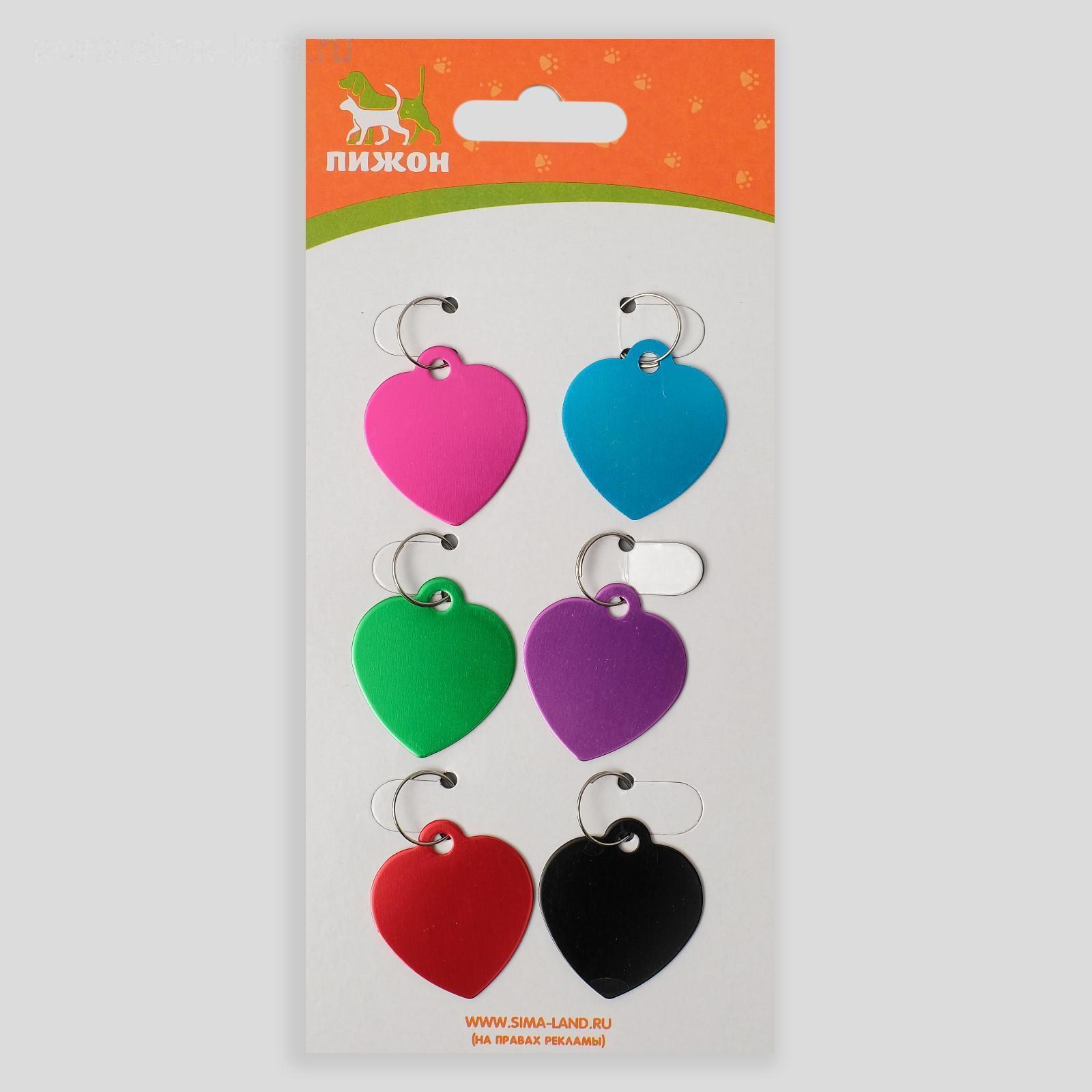 Адресник под гравировку "Сердечко" 3 х 3 см, фасовка 6 шт, микс