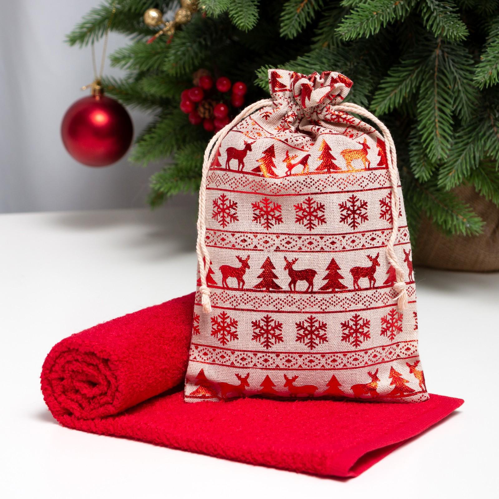 Полотенце махровое Экономь и Я "Новогодние мотивы" 30*60 см,красный,70% хл.,30% бамбук,340г/м2 91771