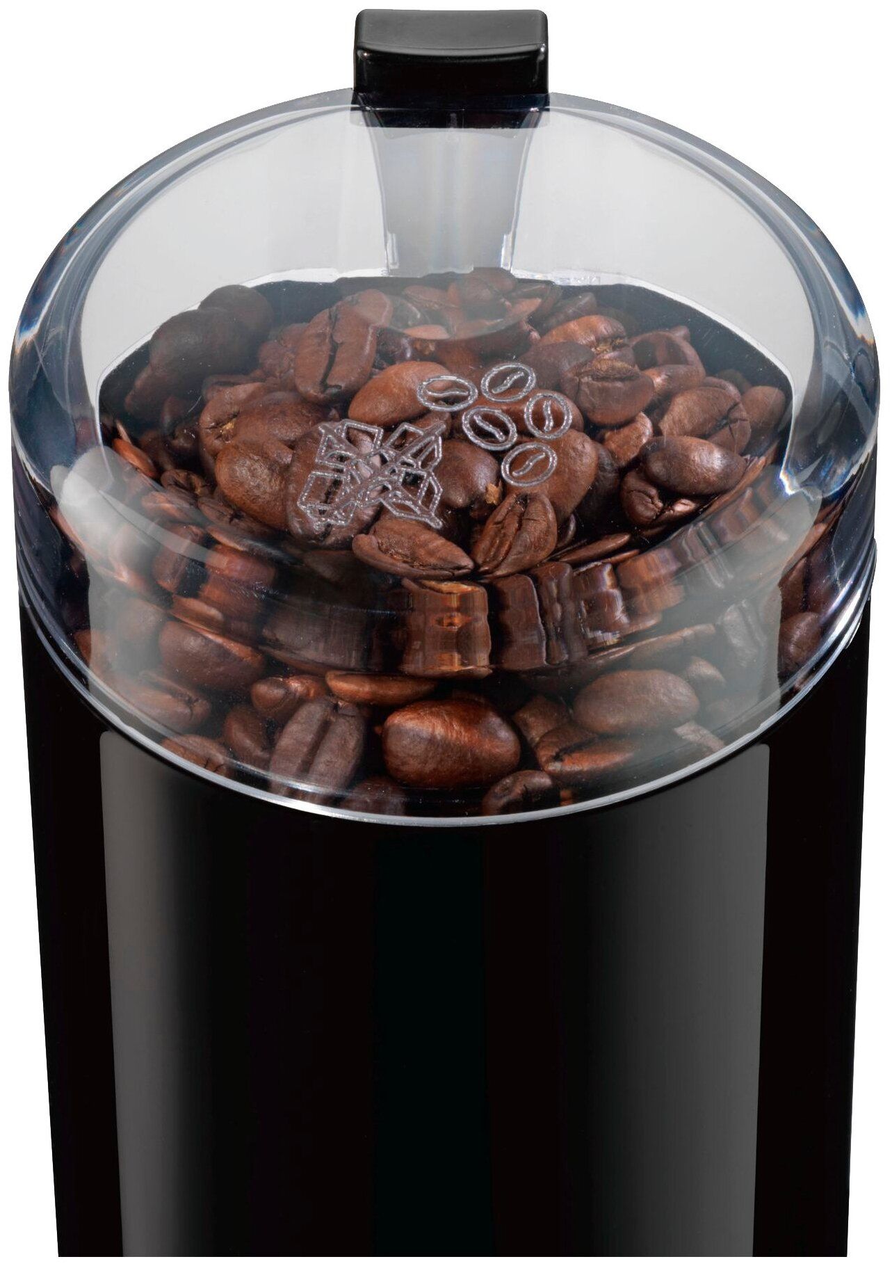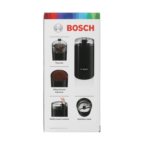 Благодаря кофемолке электрической Bosch TSM6A013B вы сможете за считанные минуты перемолоть кофейные зерна для дальнейшего приготовления ароматного кофе. Представленное устройство станет настоящей находкой для любителей кофе, которые не хотят довольствоваться растворимым кофе и желают принять участие практически во всех этапах варки горячего напитка, включая измельчение зерен кофе. Модель стала обладательницей цилиндрической формы корпуса, имеющего классическую черную расцветку. С таким дизайном техника будет хорошо смотреться в кухне, в которой остальные кухонные приборы также имеют окрас в темных тонах. Кофемолка электрическая Bosch TSM6A013B оборудована ротационным ножом, отвечающим за измельчение кофейных зерен. Вращаясь, он обеспечивает быстрый и качественный помол. Мощность 180 Вт позволит потратить этому прибору на процедуру измельчения зерен кофе минимальное количество времени. Максимальная доза помола, доступная на данной модели, равняется 75 г. Такого количества кофе хватит для приготовления двух чашек двойного эспрессо.