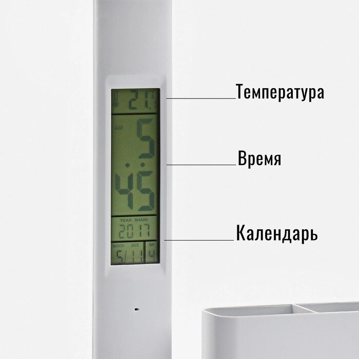 Часы-лампа электронные: календарь, термометр, LED, 3 режима, USB, 32x12 x17 см