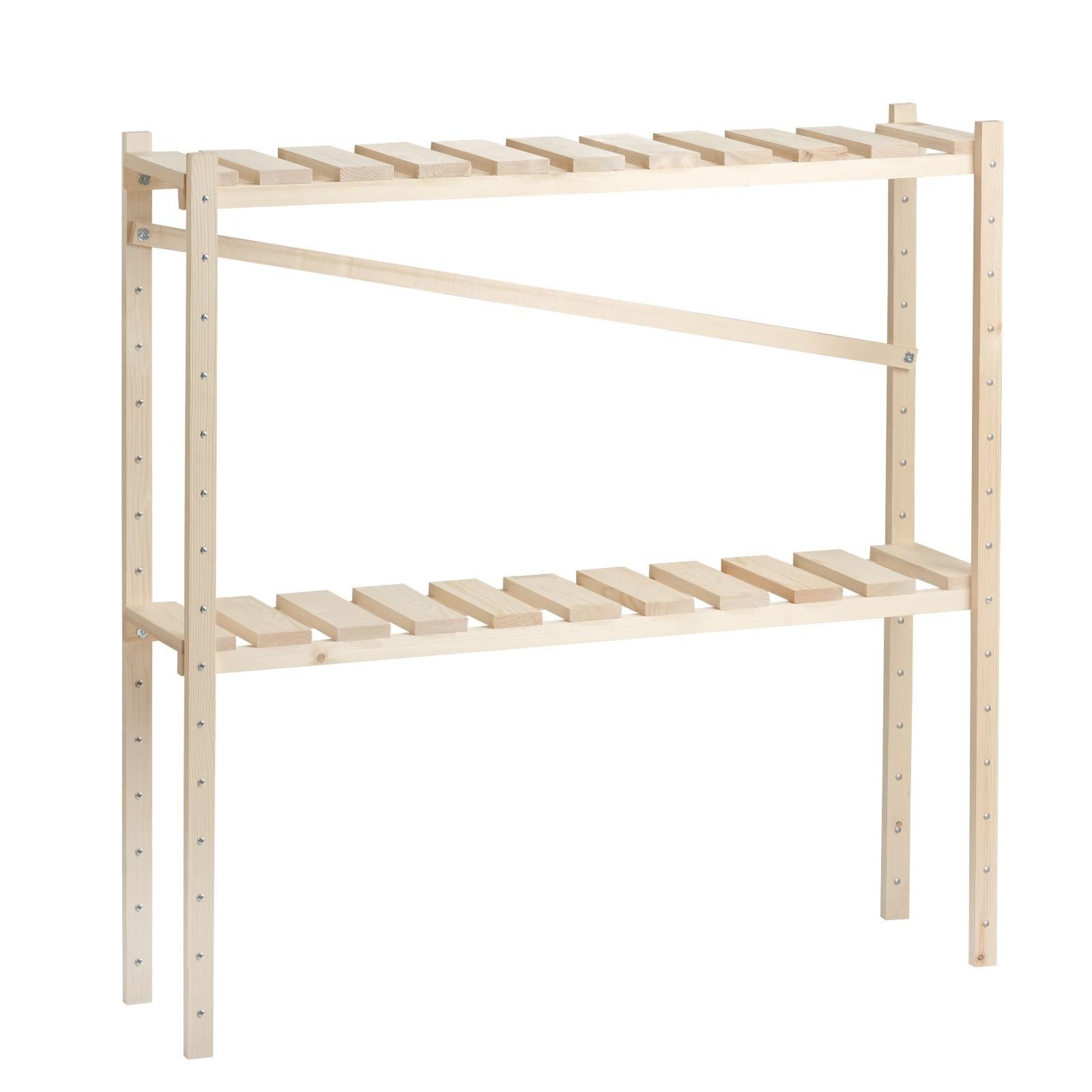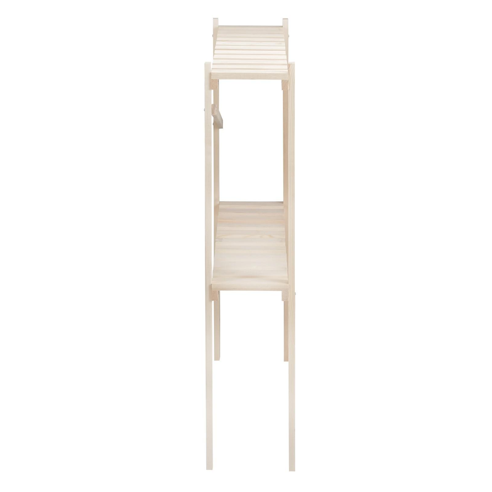 Деревянный стеллаж – универсальная, безопасная и вместительная мебель, которая не занимает много места. Его можно поставить в бане, мастерской, гараже и ему точно найдется место в вашем доме. На стеллаже с легкостью поместятся все банные принадлежности, инструменты, детские игрушки, цветы или банки с заготовками. Изделие можно покрасить или декорировать на ваш вкус.