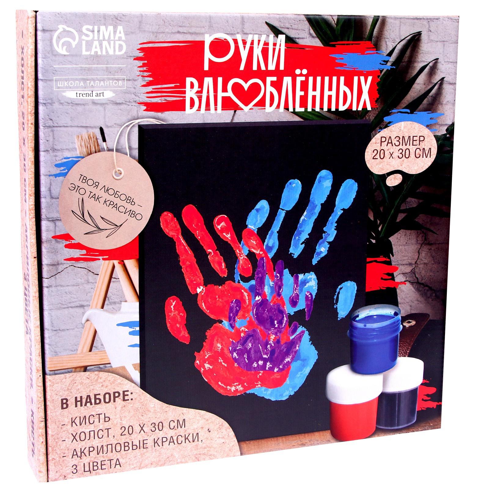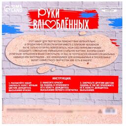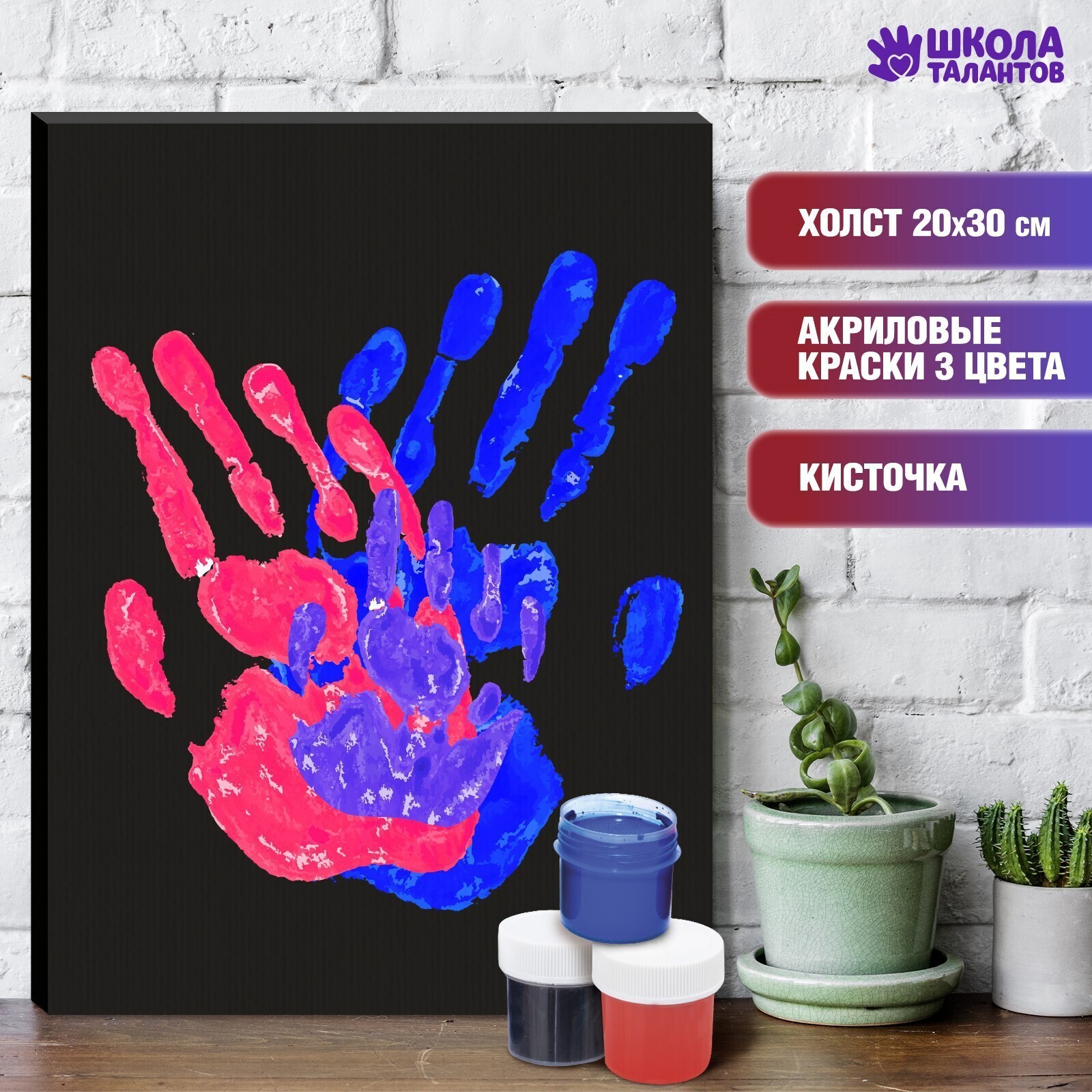 Увлекательный процесс создания картины не оставит вас равнодушным и добавит тепло и уют в ваши отношения. Для создания картины необходимо заполнить холст краской на ваш выбор, затем нанести краску другого цвета на ладонь, растерев её кистью и быстро отпечатать ее на холсте, после высыхания нанести на холст второй отпечаток.