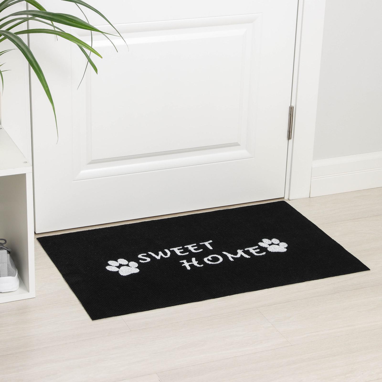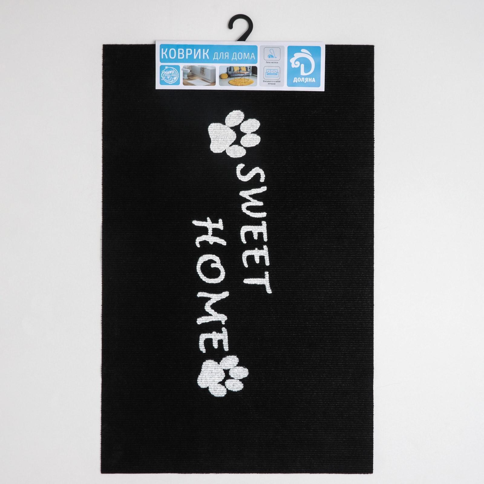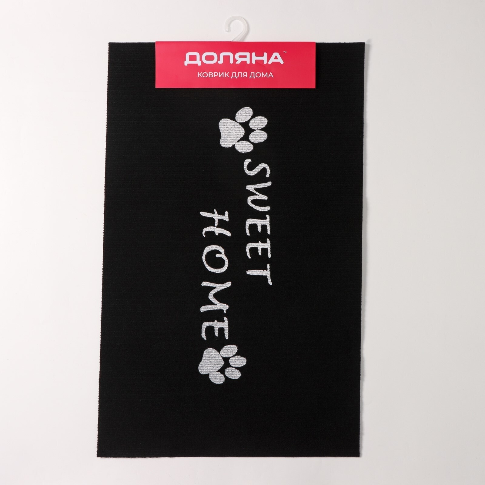 Коврик влаговпитывающий придверный светящийся в темноте Доляна «Милый дом», 50×80 см, цвет чёрный