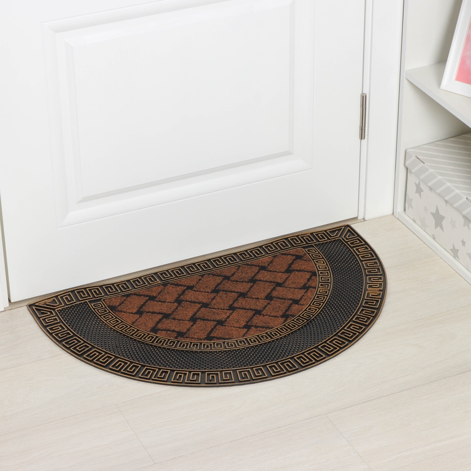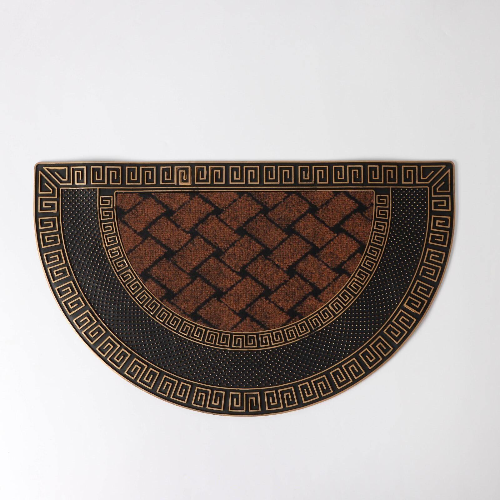Коврик придверный полукруглый Доляна «Меандр», 45×75 см, цвет золотой