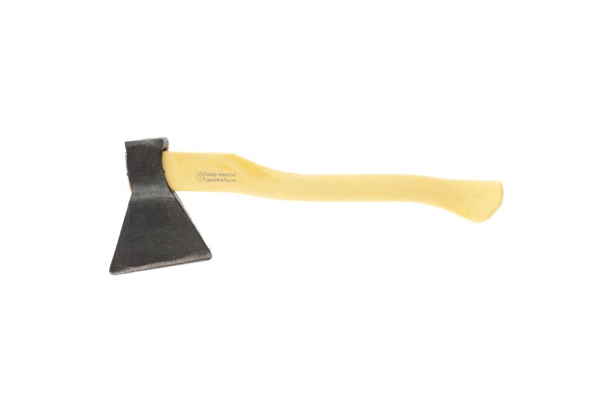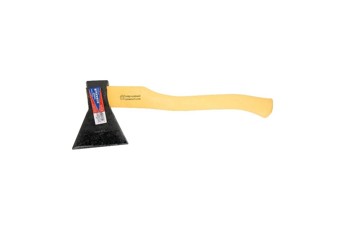 Топор выкован из цельнометаллической заготовки (марка 60Г), что полностью исключает вылет обуха. Твердость – 50 HRC. Выдерживает высокую нагрузку. Эргономичная двухкомпонентная рукоятка хорошо поглощает колебания, возникающие при ударе, не передавая их на руку. Вес с топорищем 1200 г.