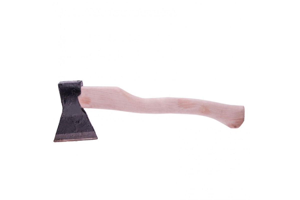 Кованый топор Б 21670 с рабочей частью весом 680 г и деревянным топорищем 400 мм, вес в сборе 900 г, рассчитан на бытовое использование. Инструмент с небольшим прямым лезвием позволяет выполнять рубку и тесание древесины любых пород.
