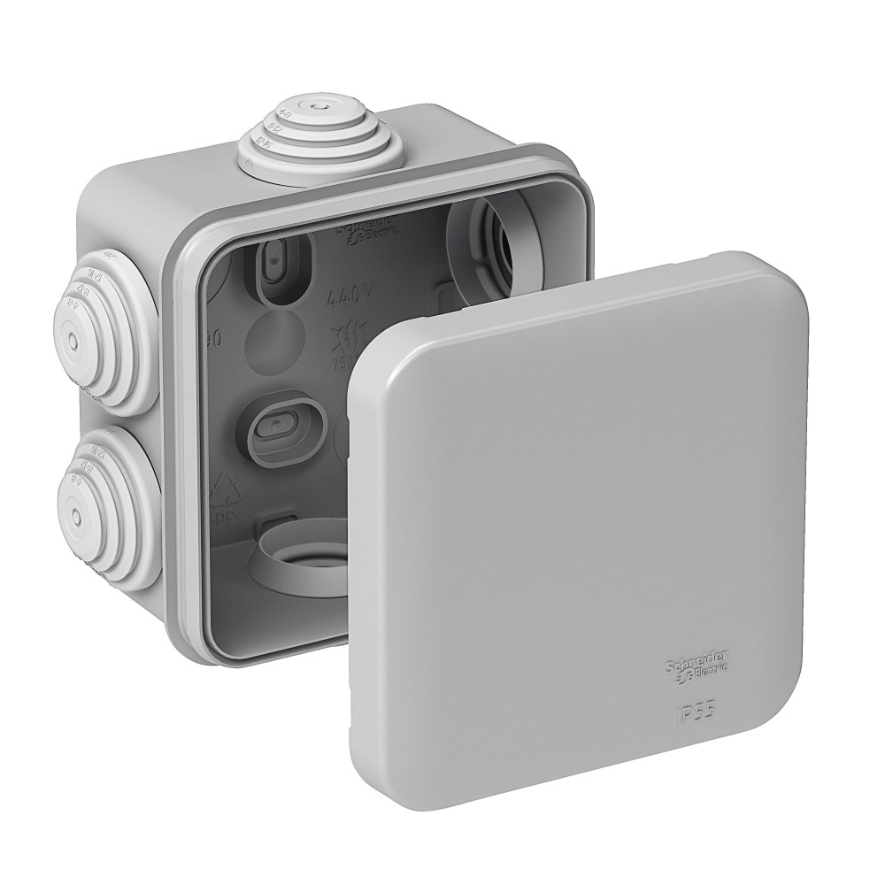 КОРОБКА РАСПРЕДЕЛИТЕЛЬНАЯ ОТКРЫТОЙ УСТАНОВКИ 70X70X40, IP55, 6 сальников , со стикером, цвет - серый
