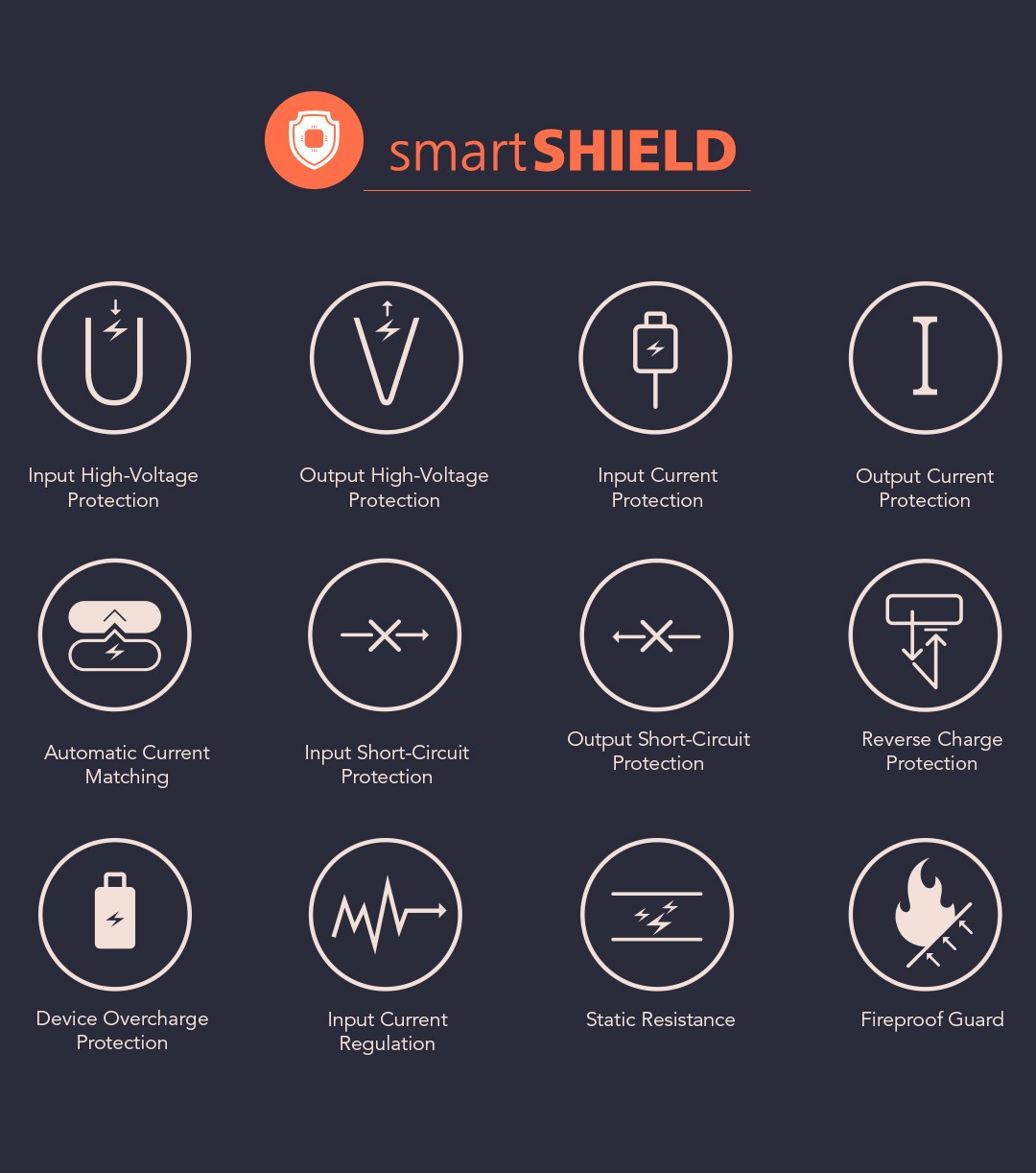 • Ток заряда USB A (3-ий) 5V/4.5A, 9V/2A, 12V/1.5A