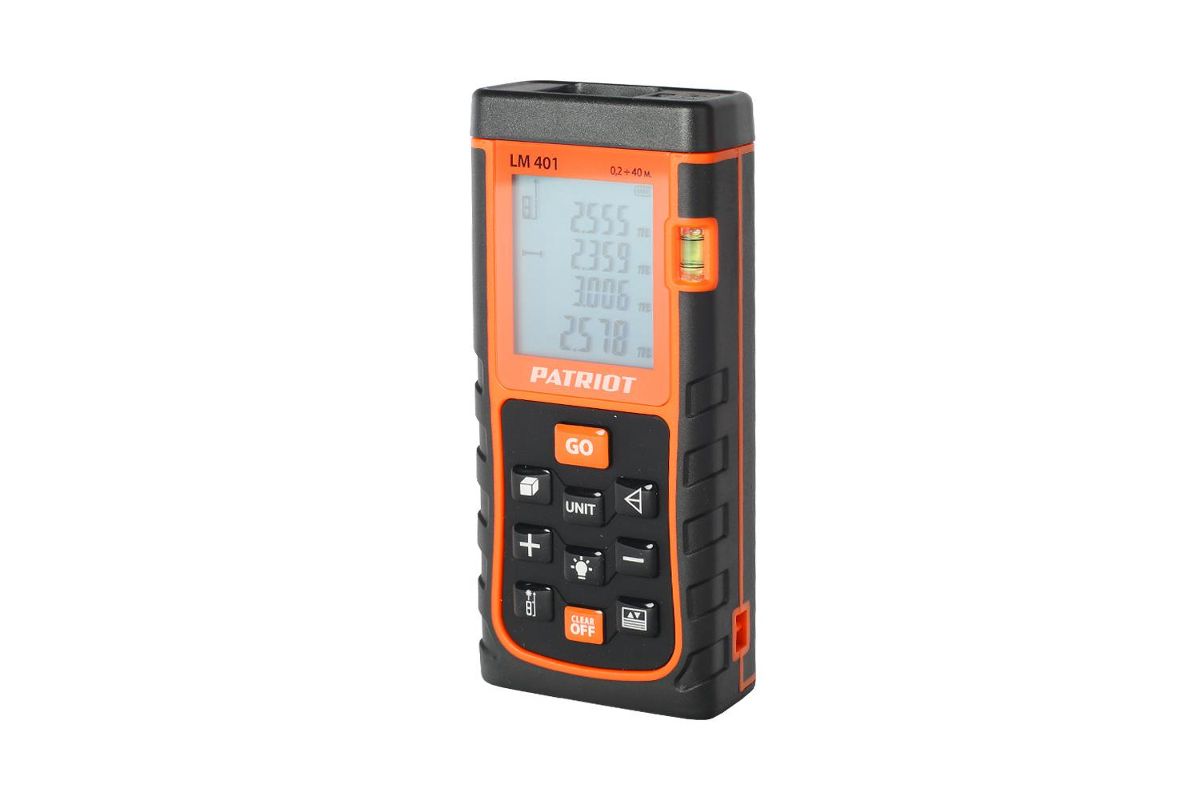 Лазерный дальномер PATRIOT LM 401 – прибор для измерения расстояний, площадей и объёмов. Складывает, вычитает и проводит расчёты по теореме Пифагора. Диапазон измерений – 0,2-40 м. Точность ±2.0 мм.