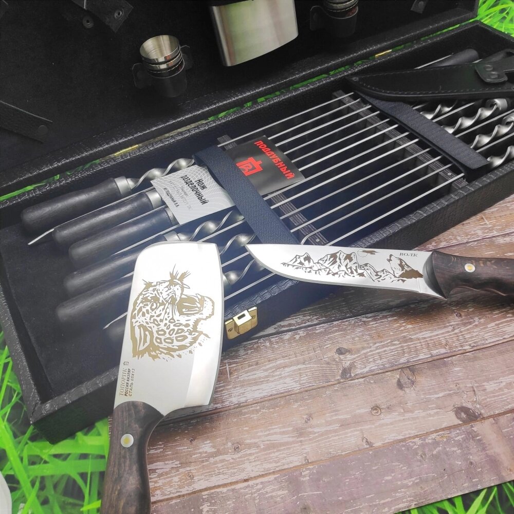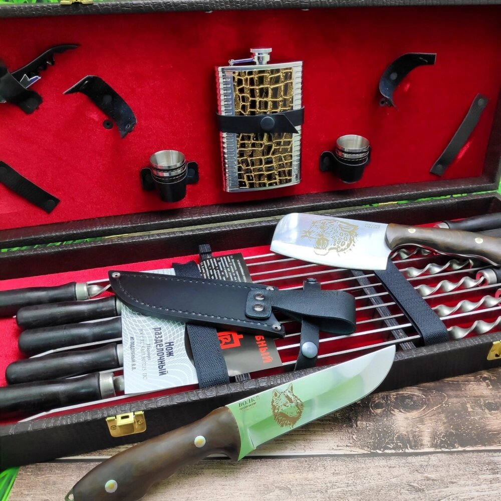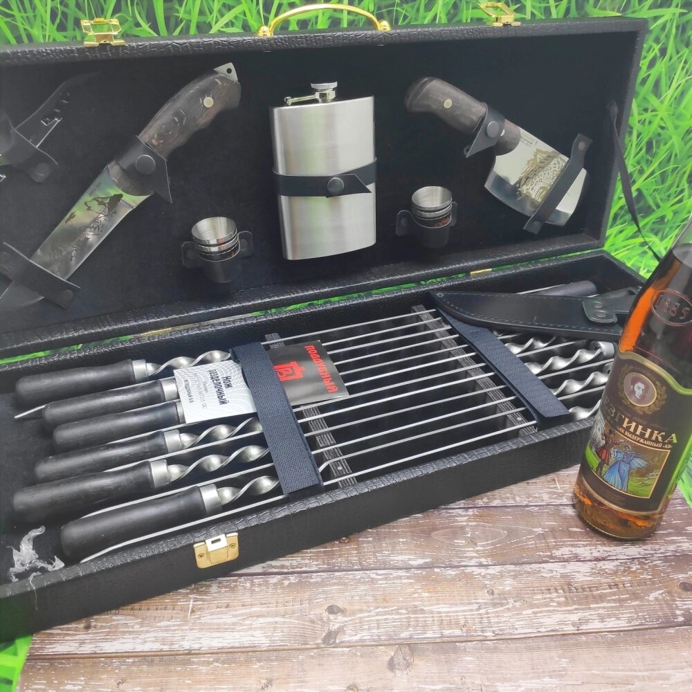 Набор для шашлыка и гриля в чемодане Царский 11 Гранд Кизляр России 20 предметов Black Волк