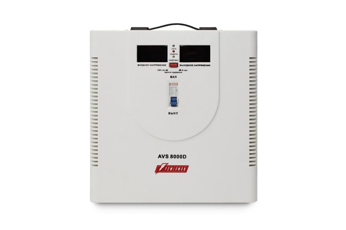 Стабилизатор POWERMAN AVS 8000D 8000ВА 40А КПД 98% циф. индикация вх./вых. напряж.