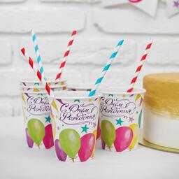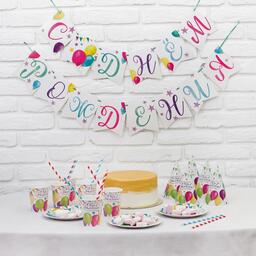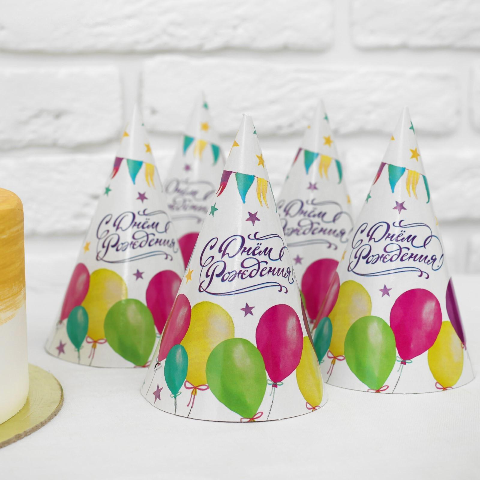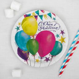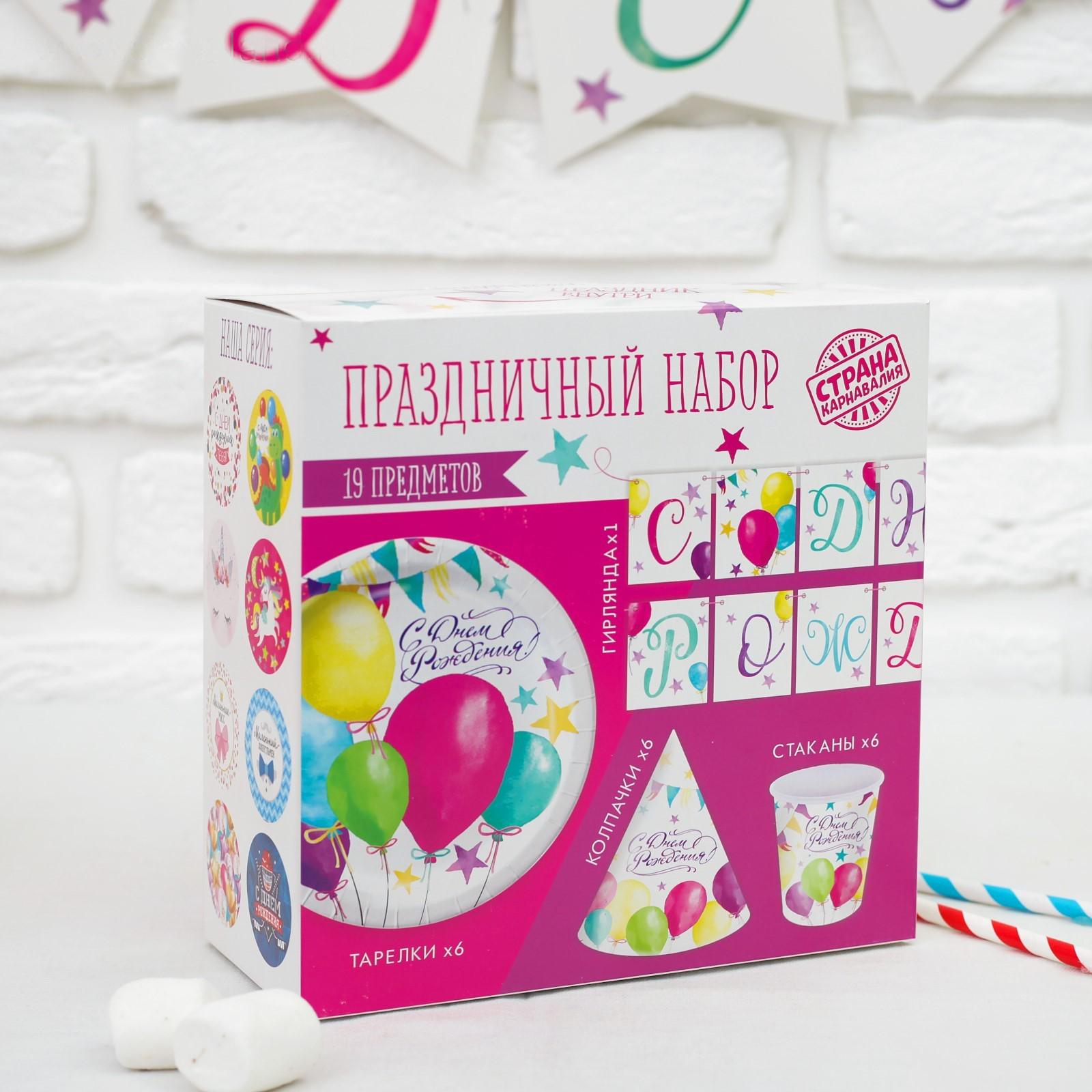 Набор бумажной посуды "С днём рождения", шары, 6 тарелок, 6 стаканов, 6 колпаков, 1 гирлянда