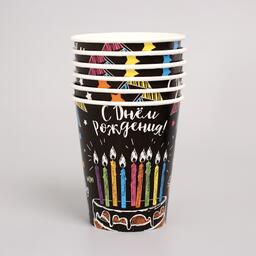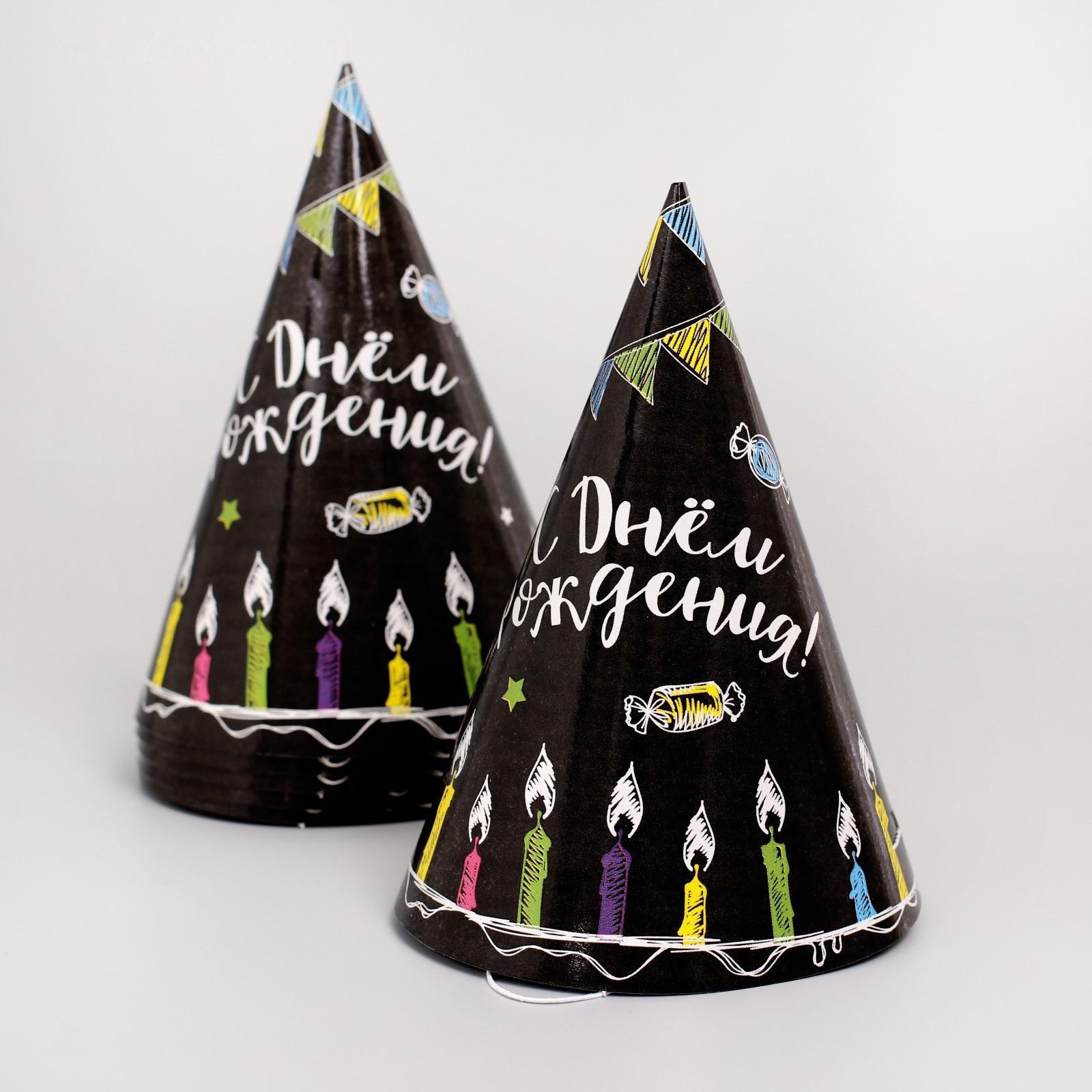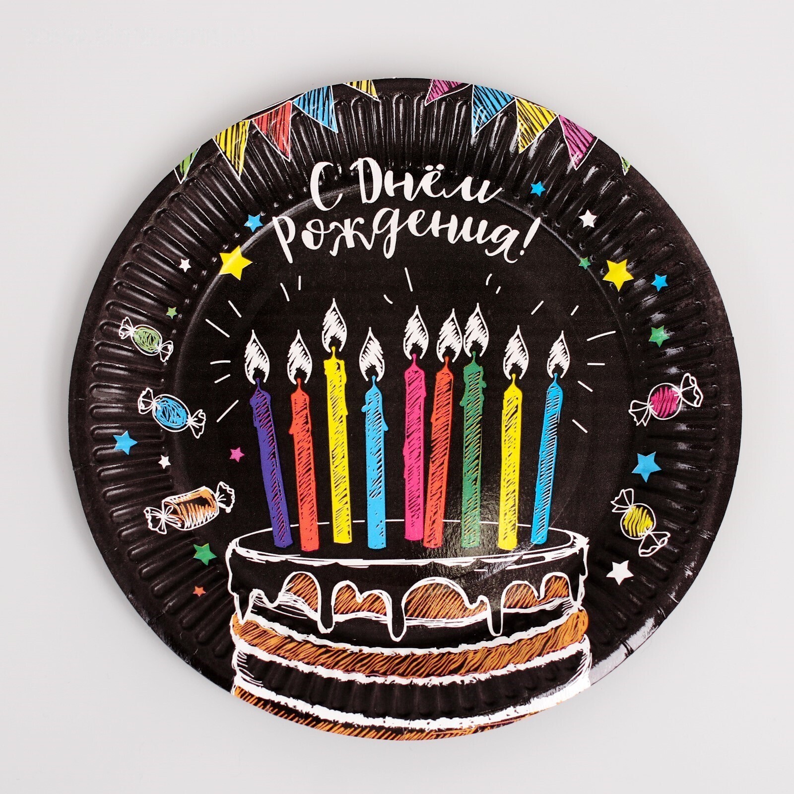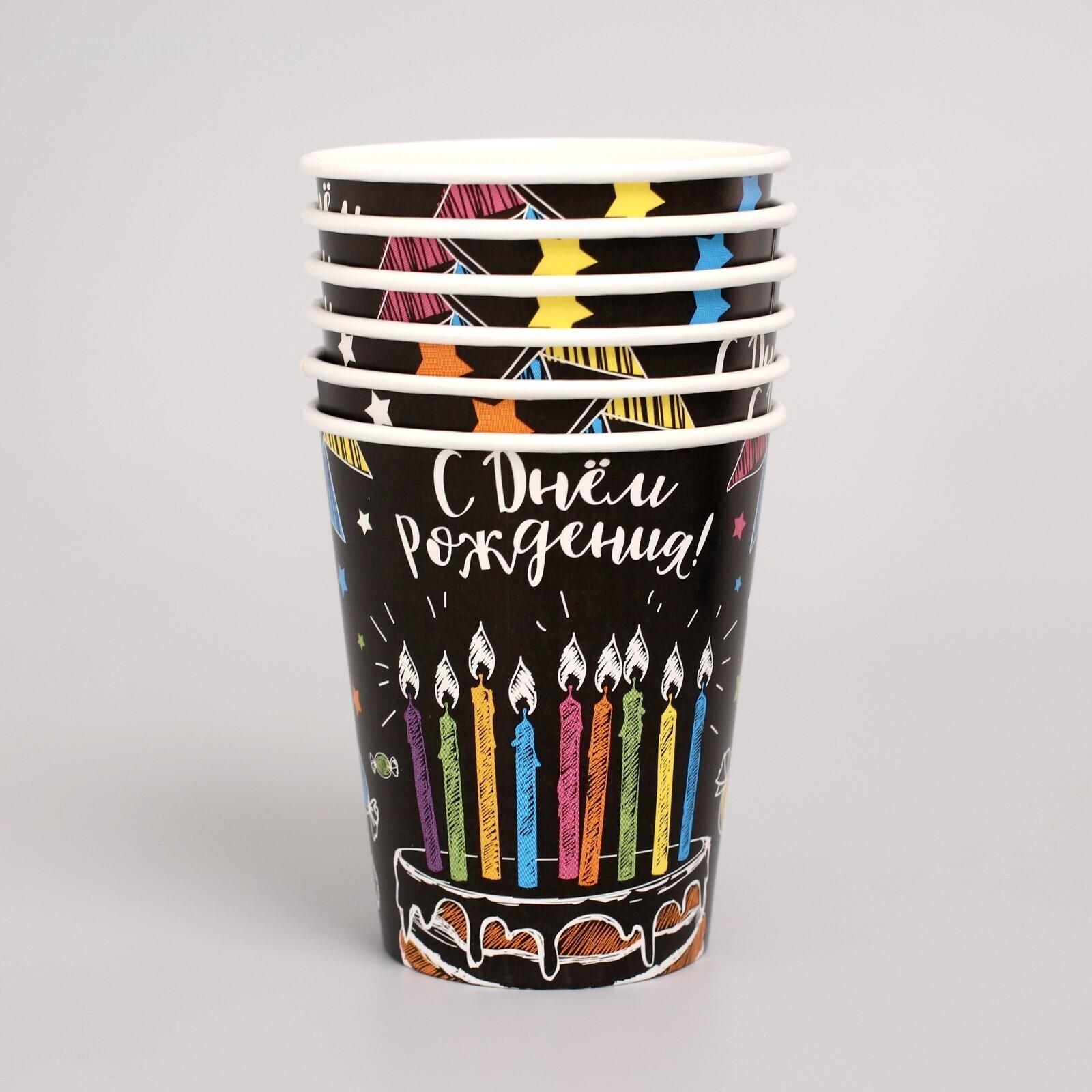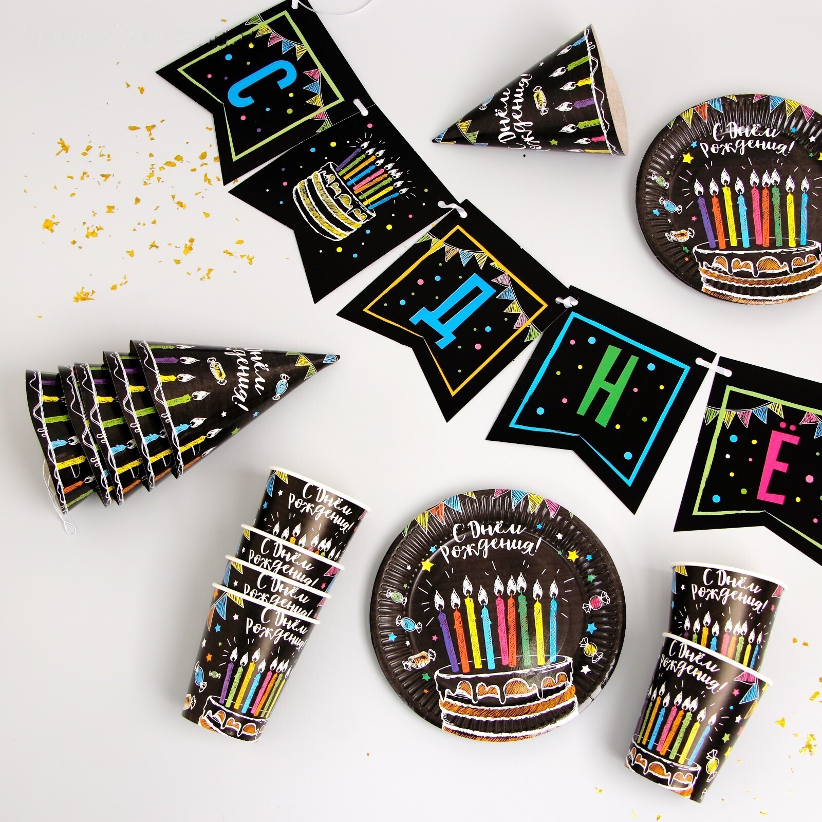 Набор бумажной посуды «С днём рождения, мелом»: 6 тарелок, 1 гирлянда , 6 стаканов, 6 колпаков