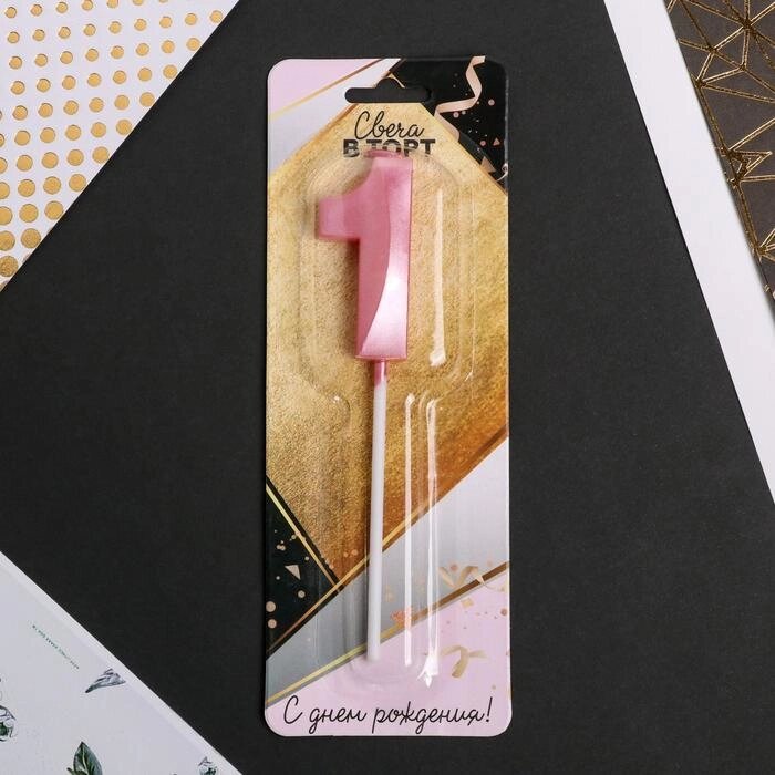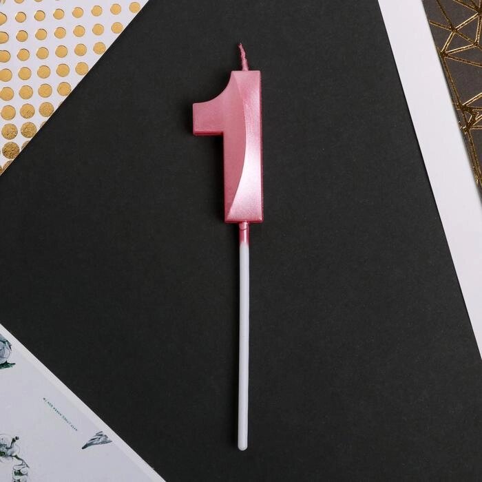 Свеча цифра "1" , розовая, 5 х 12 см