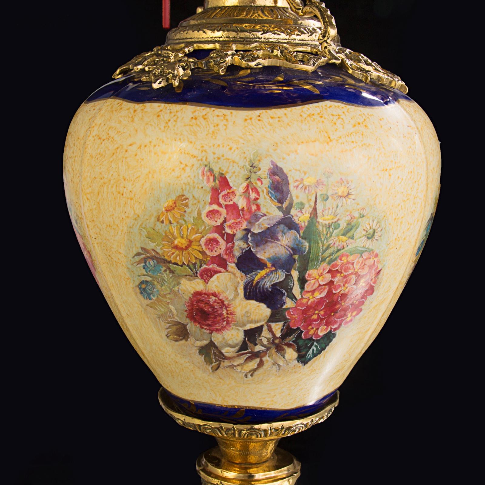Всегда мечтали жить во дворце? Устройте королевские апартаменты у себя дома! С изысканными предметами, подобными такой очаровательной вазе ручной работы, это становится проще простого. Ваза выполнена из керамики высочайшего качества и декорирована бронзой. Элегантная форма, изящные изогнутые ручки и красочные цветочные рисунки делают ее не просто заметной, но поистине роскошной, и, что важно, при этом ни капли не вычурной. Ваза будет прекрасно смотреться на каминной полке или возле окна - там, где она окажется на виду и каждый сможет оценить ее удивительную красоту.