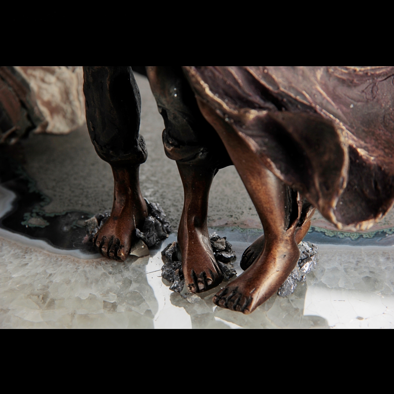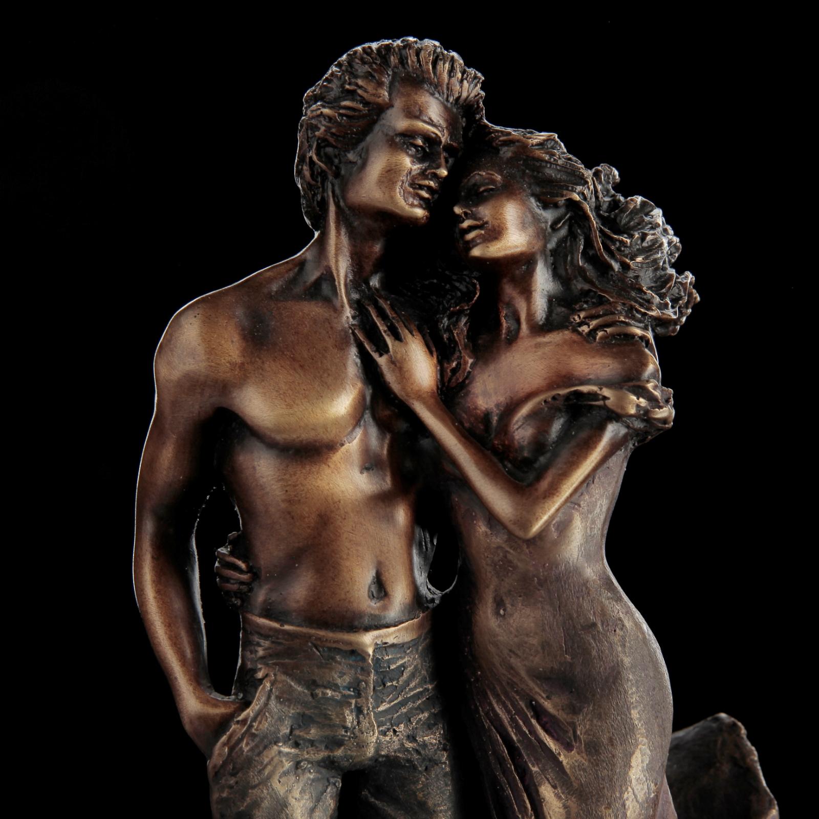 Хрупкая девушка и сильный мужественный парень являют собой столь же гармоничное целое, какое образуют столь разные материалы: гладкая прохладная бронза и шероховатые, возникшие в случайном, только самой природе известном порядке кристаллы. Эффектная статуэтка «Двое», изготовленная на испанской фабрике EBANO, не только станет элегантным украшением вашей гостиной, но и привнесет в нее особую, неповторимую атмосферу романтики, гармонии и любви.