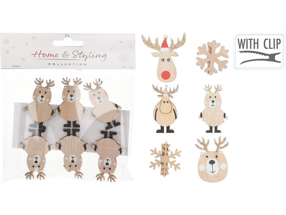 НАБОР УКРАШЕНИЙ НОВОГОДНИХ деревянных “Новогодние мотивы” 6 шт. на прищепке (код 690594)