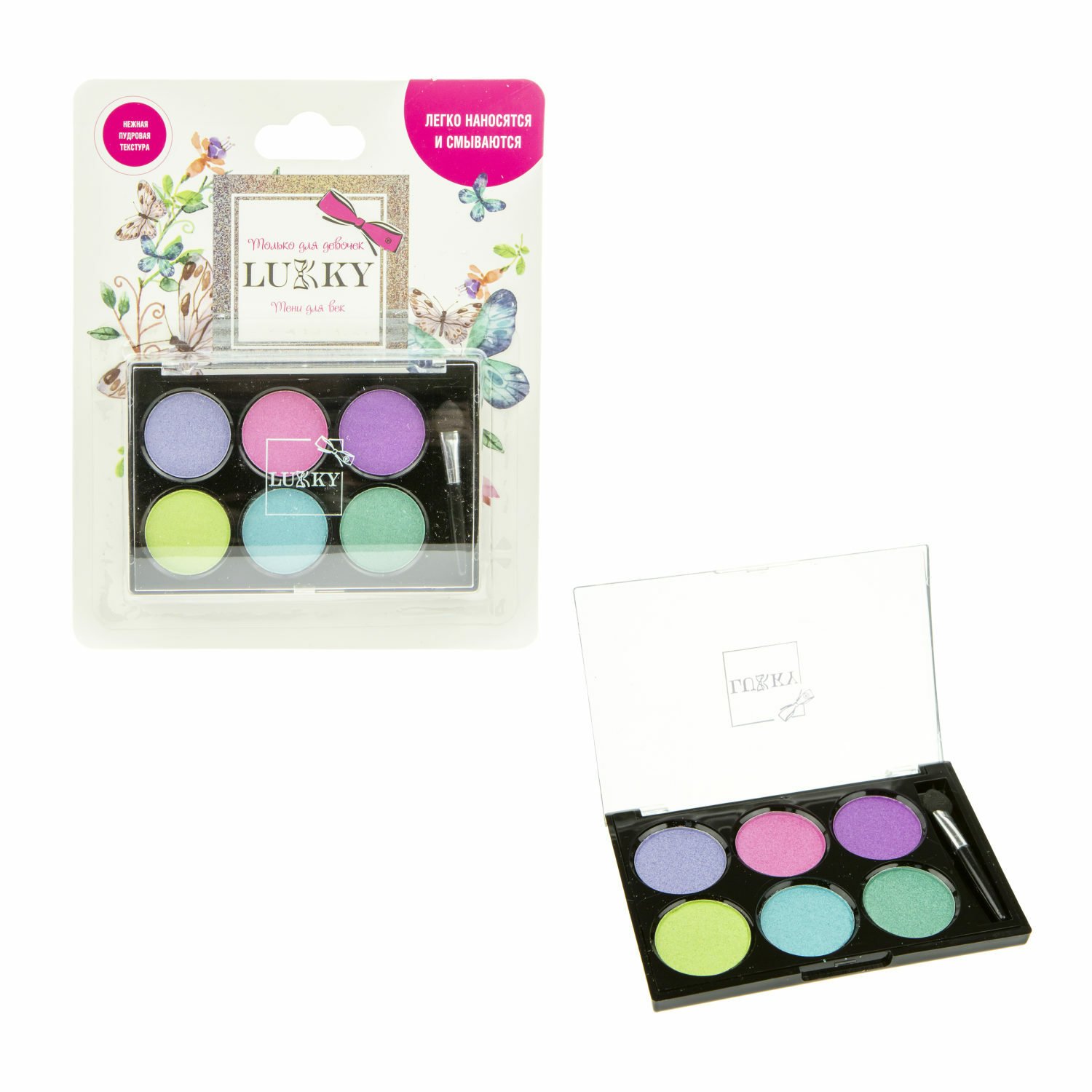 Тени для век Lukky пудровые Неон 6 цветов 8 г с аппликатором Т18930