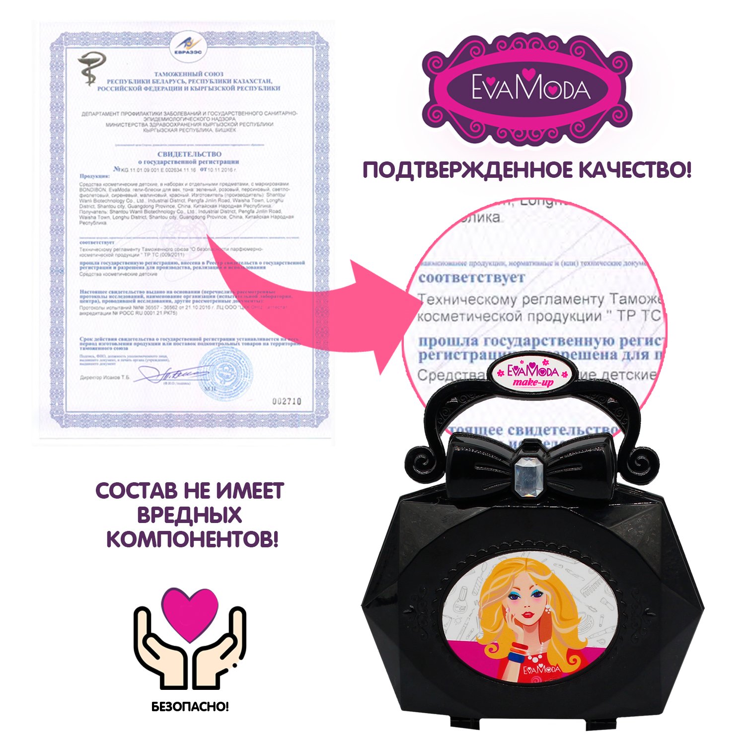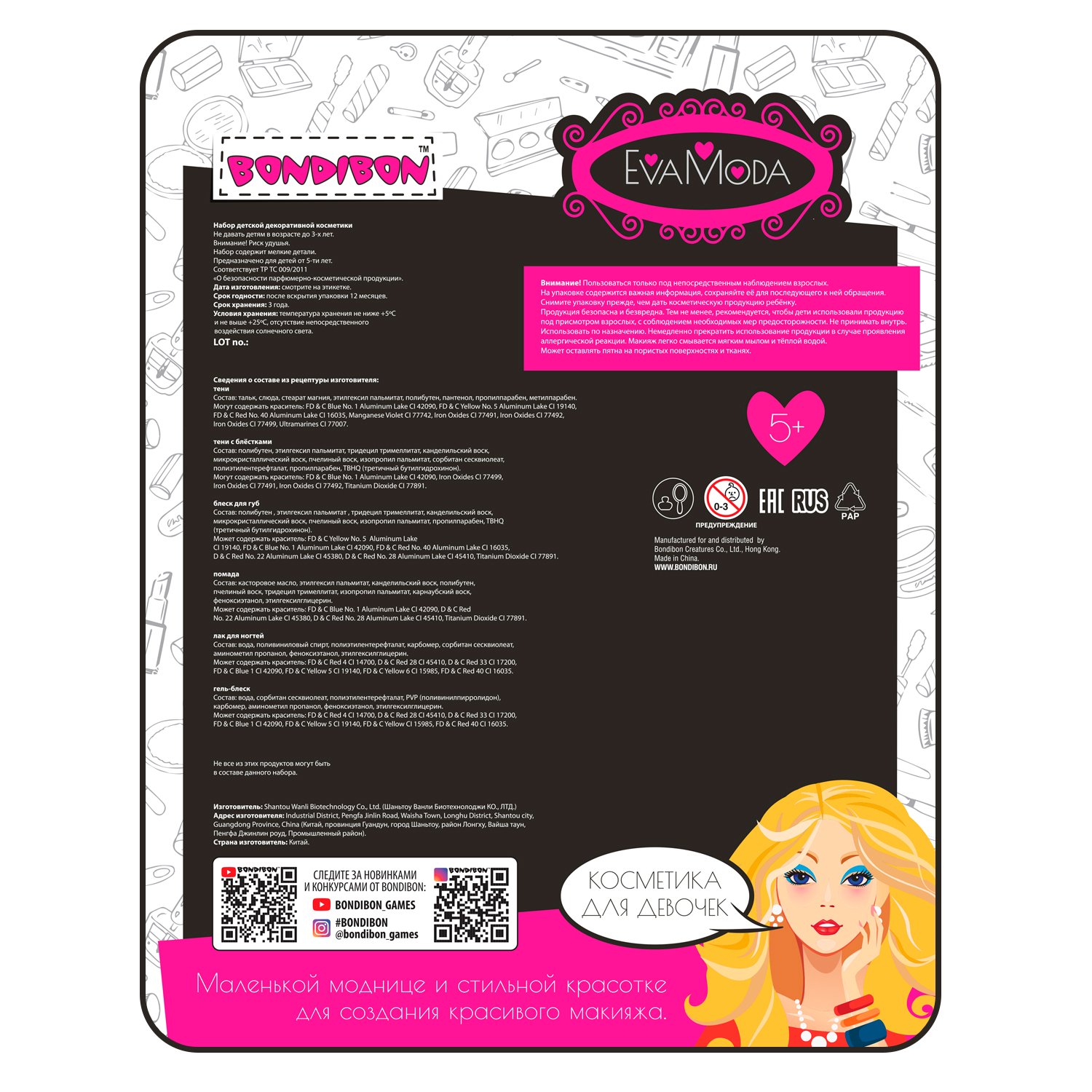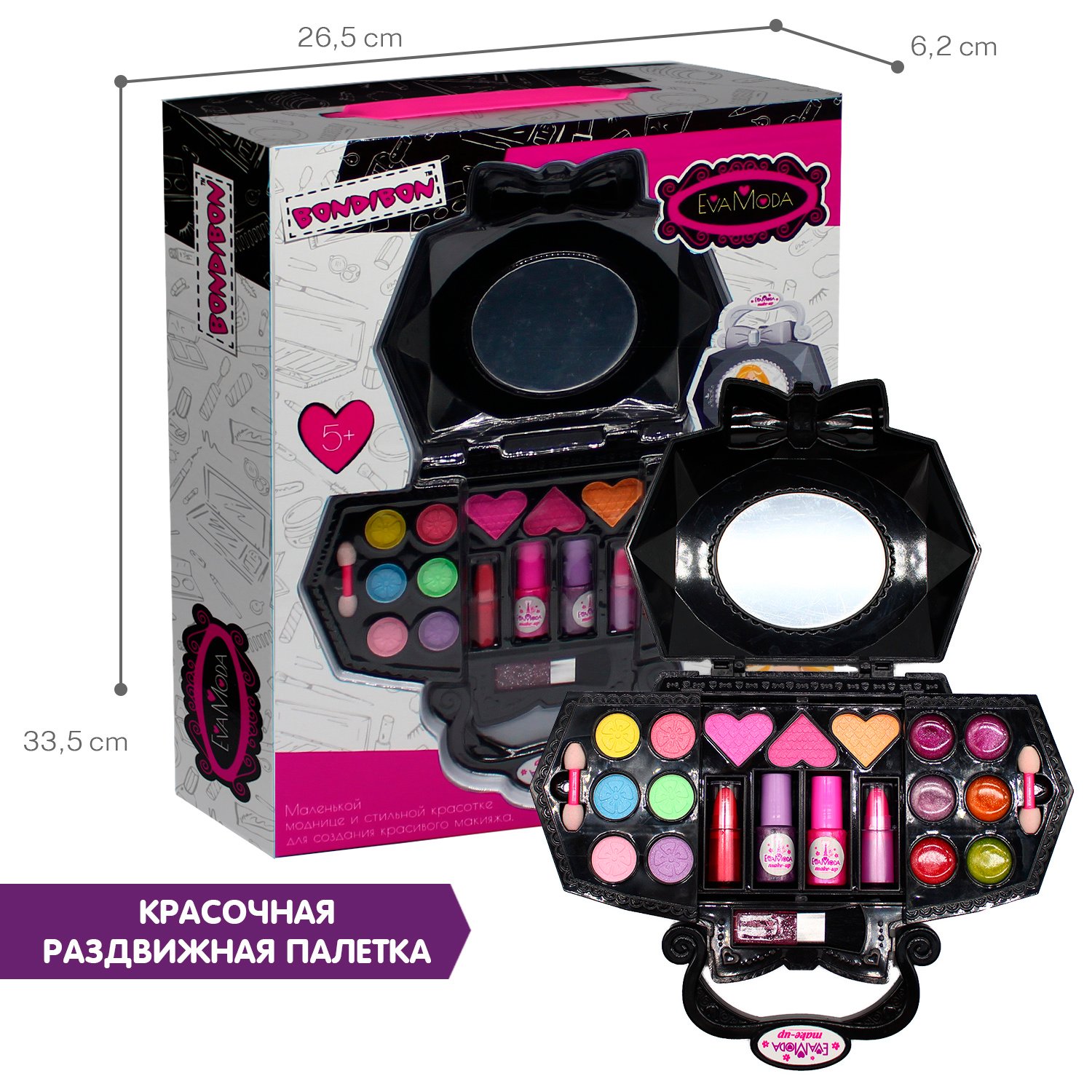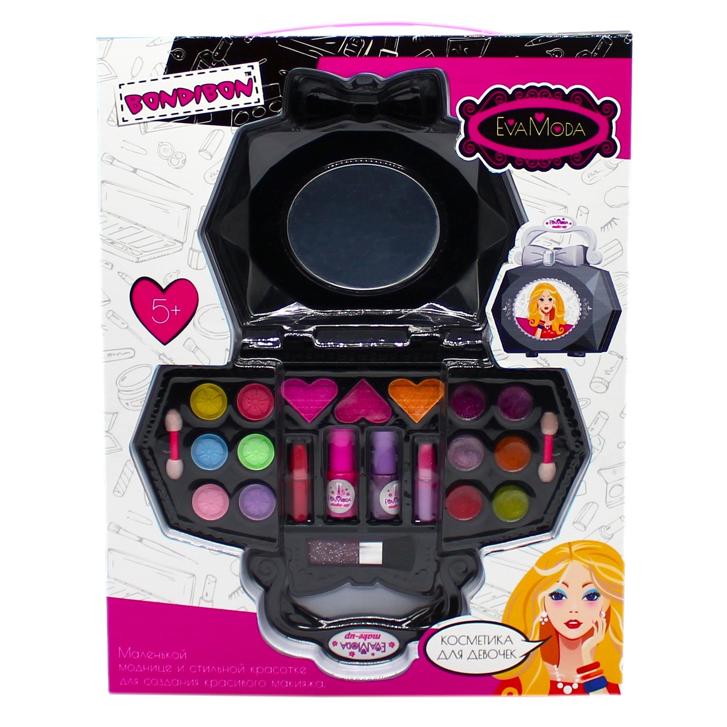 Набор детской косметики BONDIBON Eva Moda Косметичка-сумочка чёрная раздвижная ВВ5339