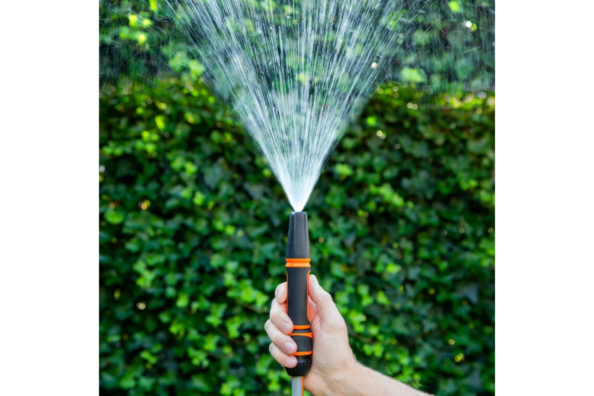 Регулируемое сопло: Поворотом сопла можно регулировать струю воды и устанавливать нужный режим от широкого распыления до мощной направленной струи. Сопло оснащено мягкой рукояткой для удобного хвата и комфортного использования.