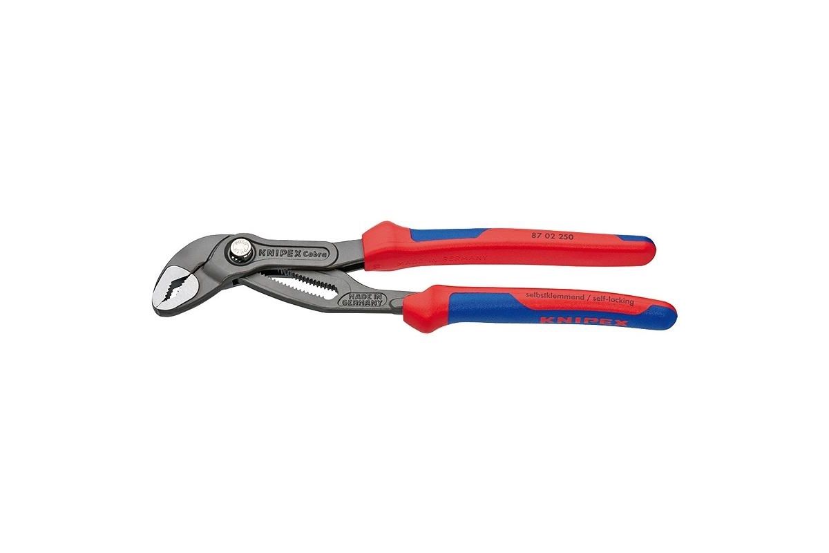 Переставной ключ KNIPEX KN-8702300 КОБРА используется для сантехнических работ. Изготовлен из кованой хром-ванадиевой стали. Максимальная ширина раскрытия для труб — 70 мм, для крепежа — 60 мм. Рабочие губки с прочными зубцами не соскальзывают с детали. Механизм плавной настройки позволяет подогнать губки точно под размер трубы или гайки. Шарнир фиксируется в нужном положении. Длина ключа — 300 миллиметров.