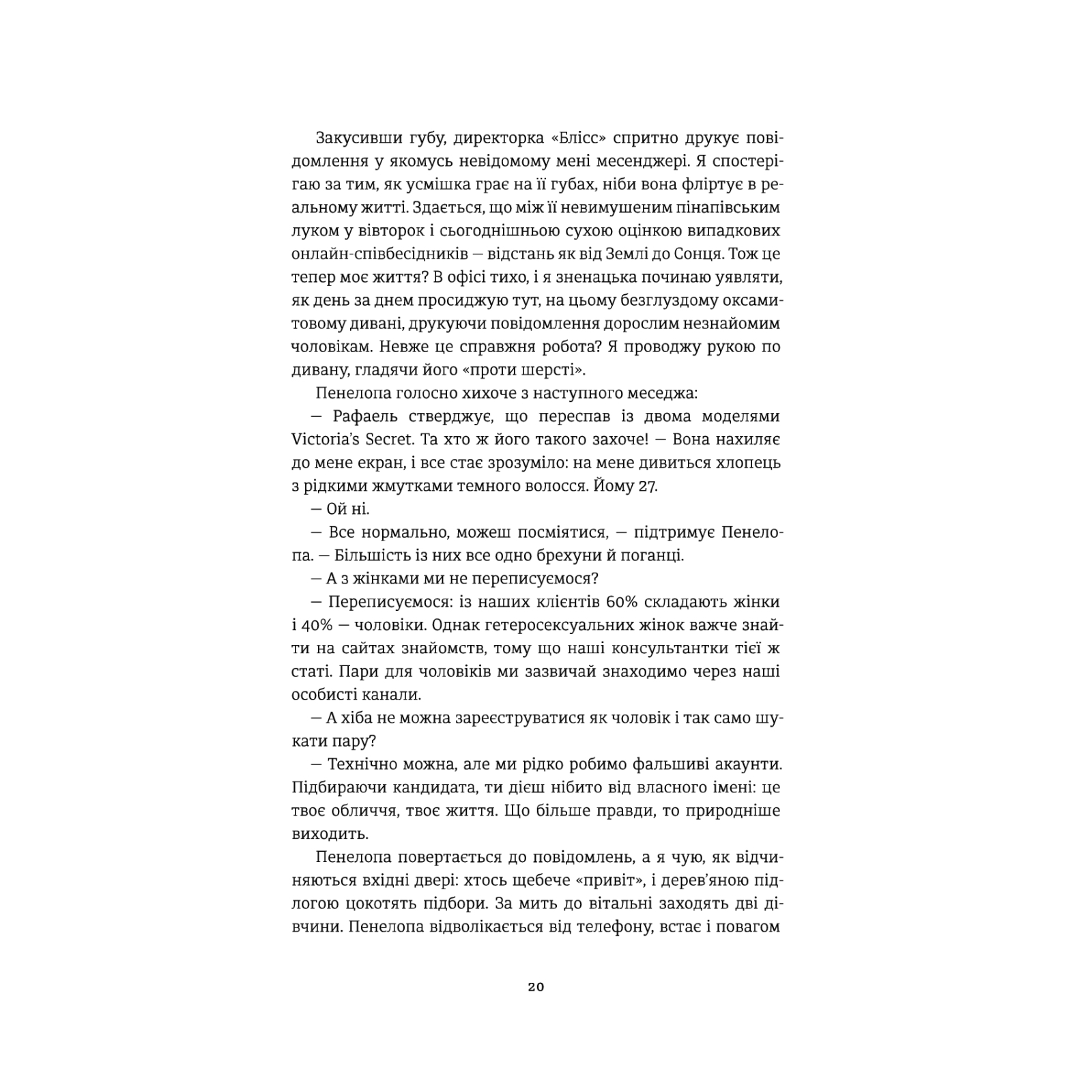 Дівчина вірить у романтичне кохання, тож і до своєї місії на посаді підходить відповідально: її завдання — підбирати ідеальні «половинки» для клієнтів, кожен з яких має власні примхи, вимоги та очікування. Саша вмикає інтуїцію і харизму, реєструється на десятках застосунків для знайомств й кидається у вир влаштовування побачень для інших. Вона навіть не здогадується, що ця робота вплине не лише на її кар’єру, а й на особисте життя. Їй доведеться мати справу з нелегким мистецтвом психології стосунків, пошуком себе й лавиною чужих та своїх почуттів.