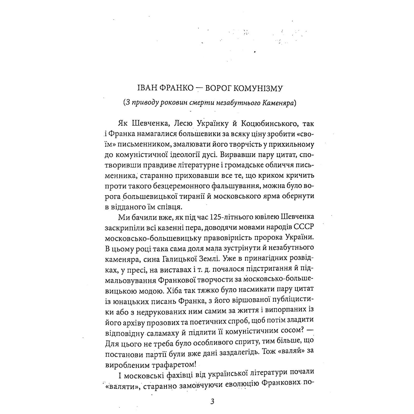 До вибраної публіцистики та есеїстики Івана Франка увійшли як добре відомі, так і заборонені в радянський час твори («Що таке поступ?», «Ukraina irredenta» та інші), а також ті, що були спотворені цензурою. Есеї були вибрані за їхньою актуальністю у наш час та за сьогоднішніми запитами читачів.