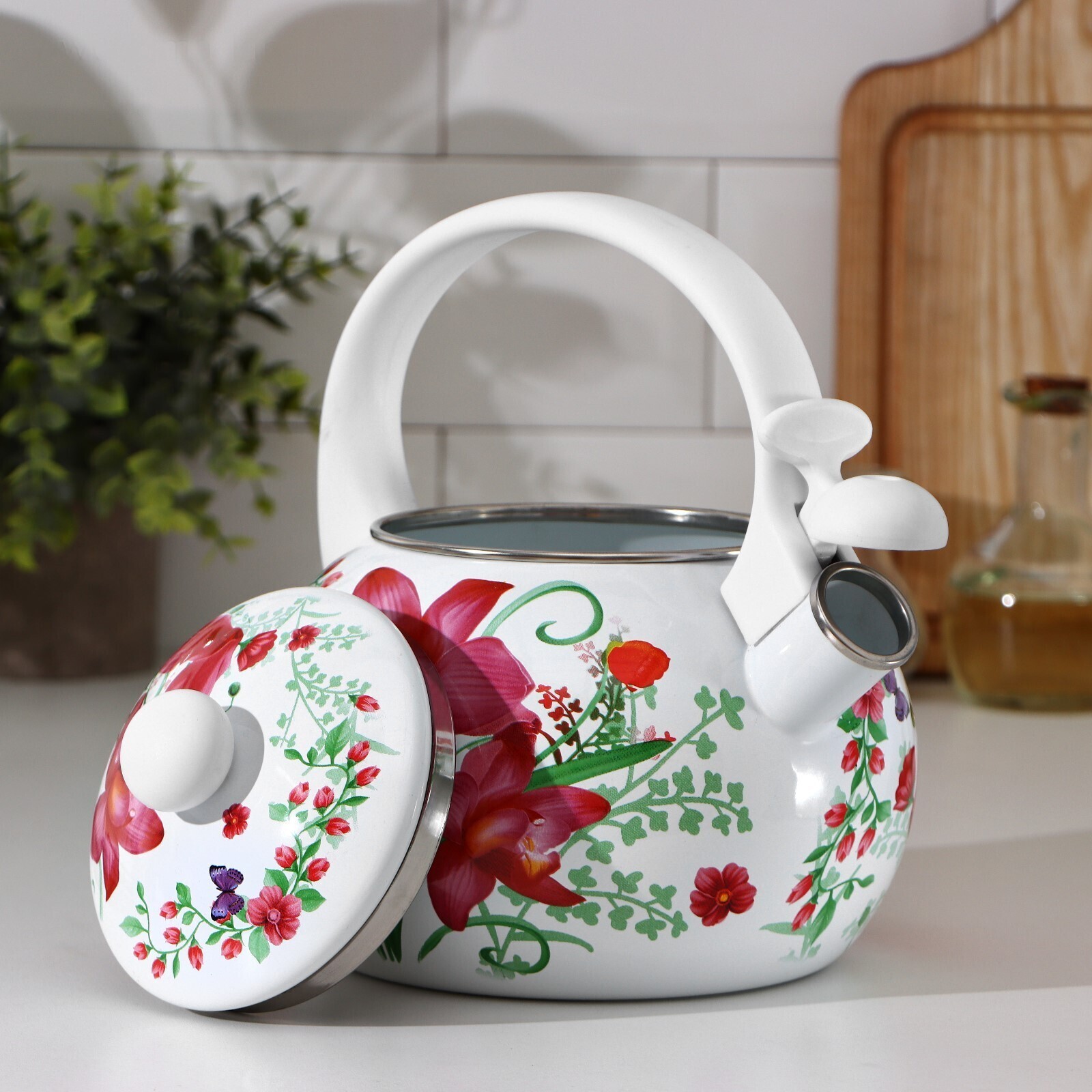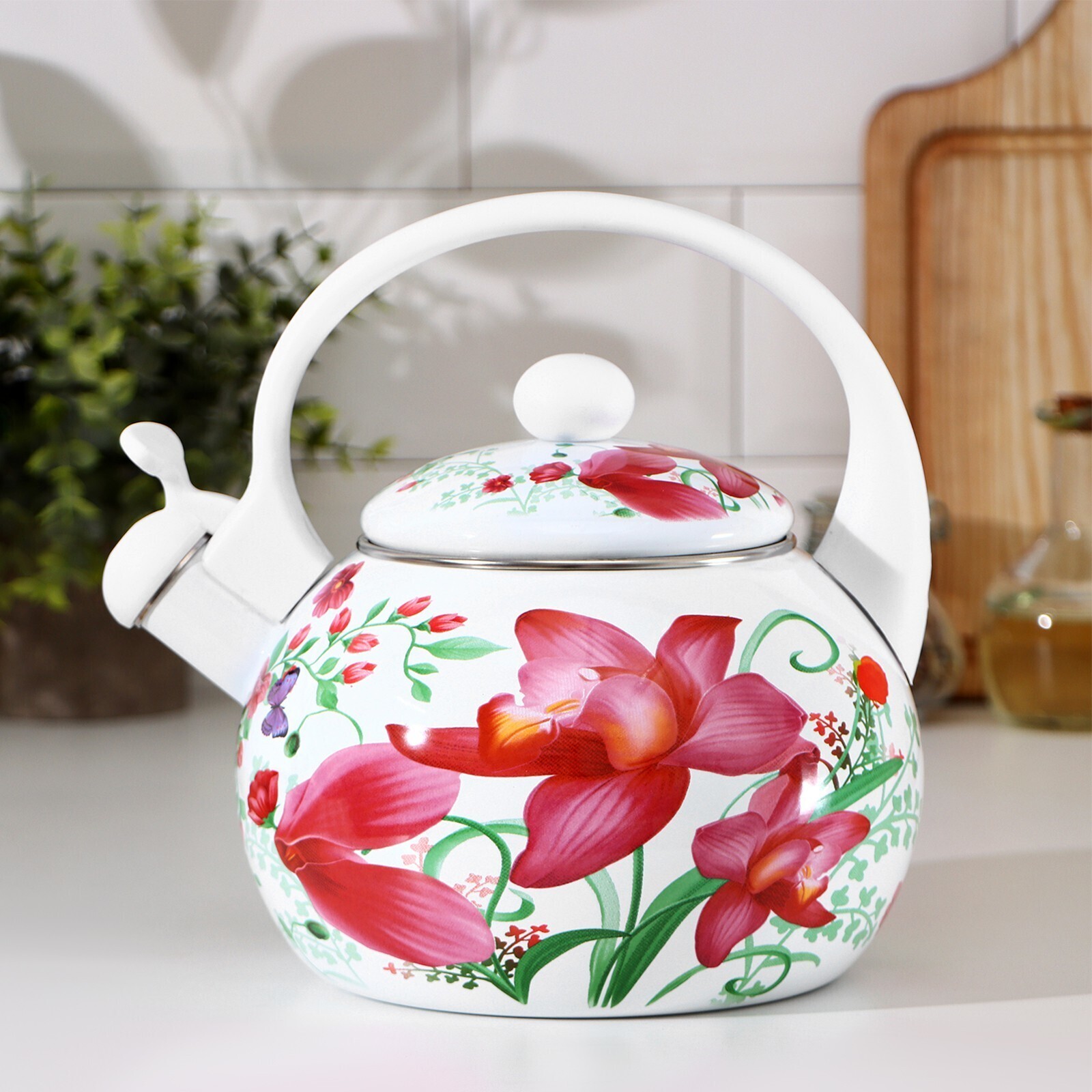 Чайник со свистком Доляна «Нарцисс», 2,2 л, фиксированная ручка, индукция, цвет белый
