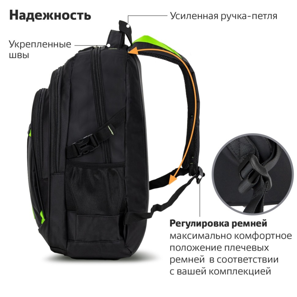 Рюкзак BRAUBERG TITANIUM универсальный, черный, салатовые вставки, 45х28х18см, 270766