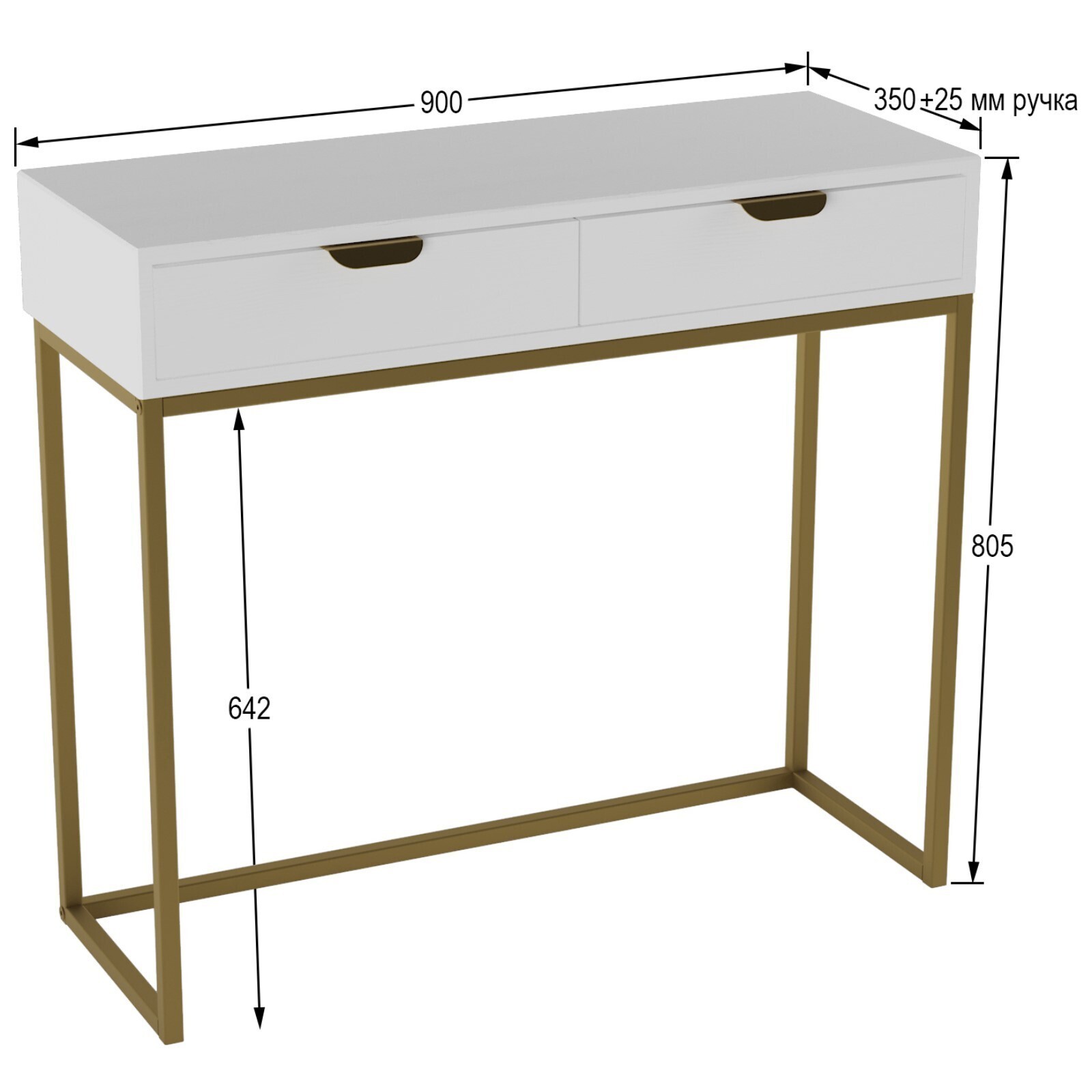 Консоль «Дрим», 900 × 375 × 805 мм, цвет ясень браш белый / золото