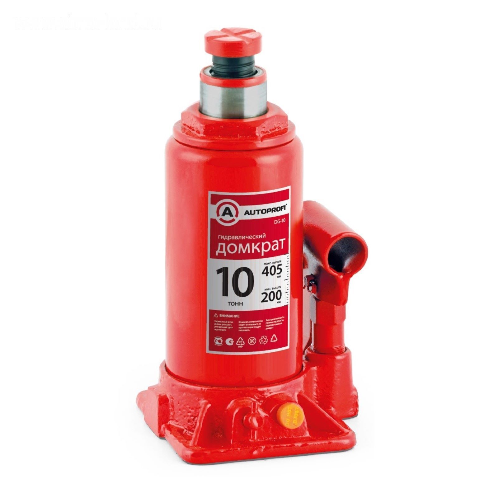 Домкрат гидравлический AUTOPROFI DG-10, бутылочный, 10 тонны, высота подъёма 405 мм