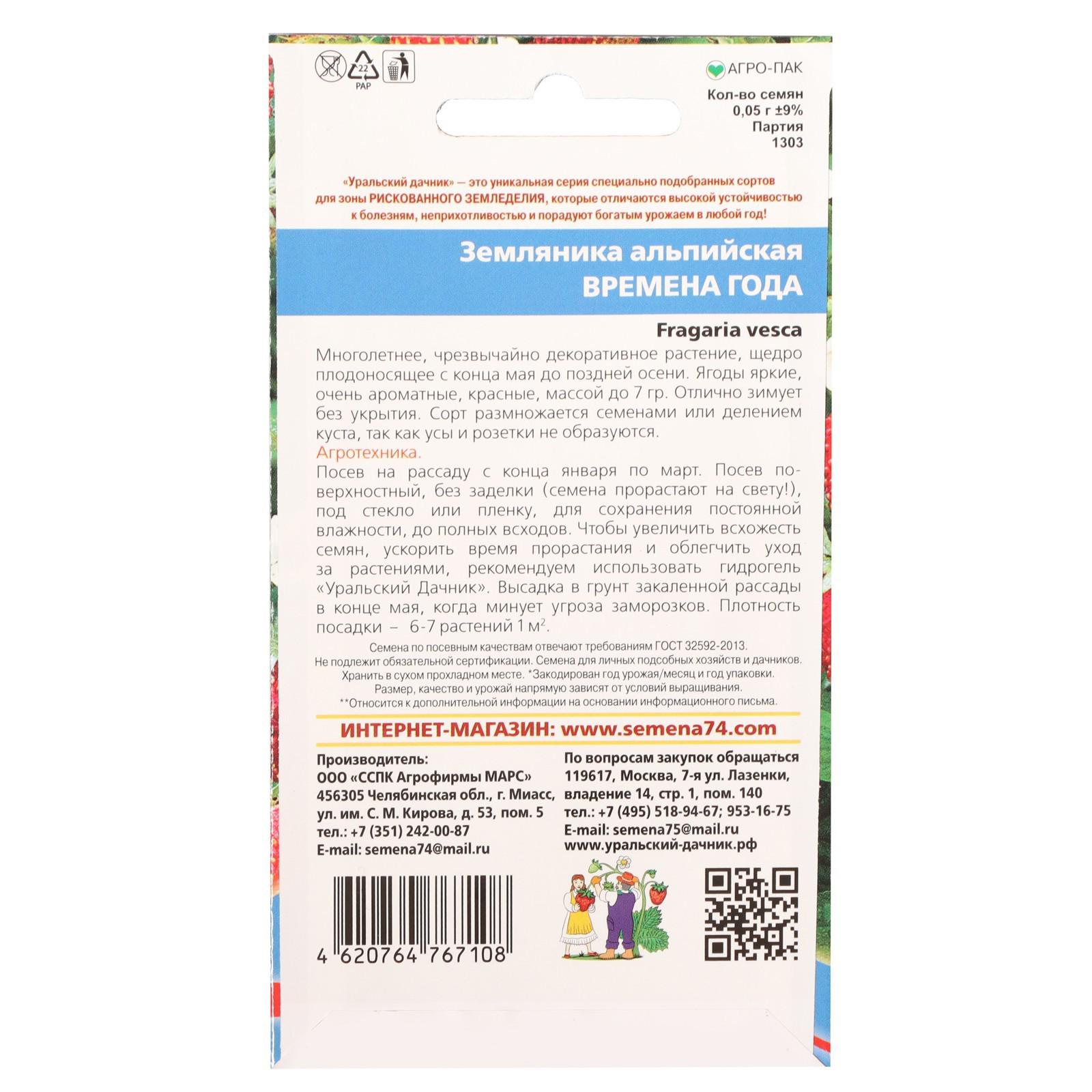 Семена Земляника "Времена года", альпийская, 0,05 г