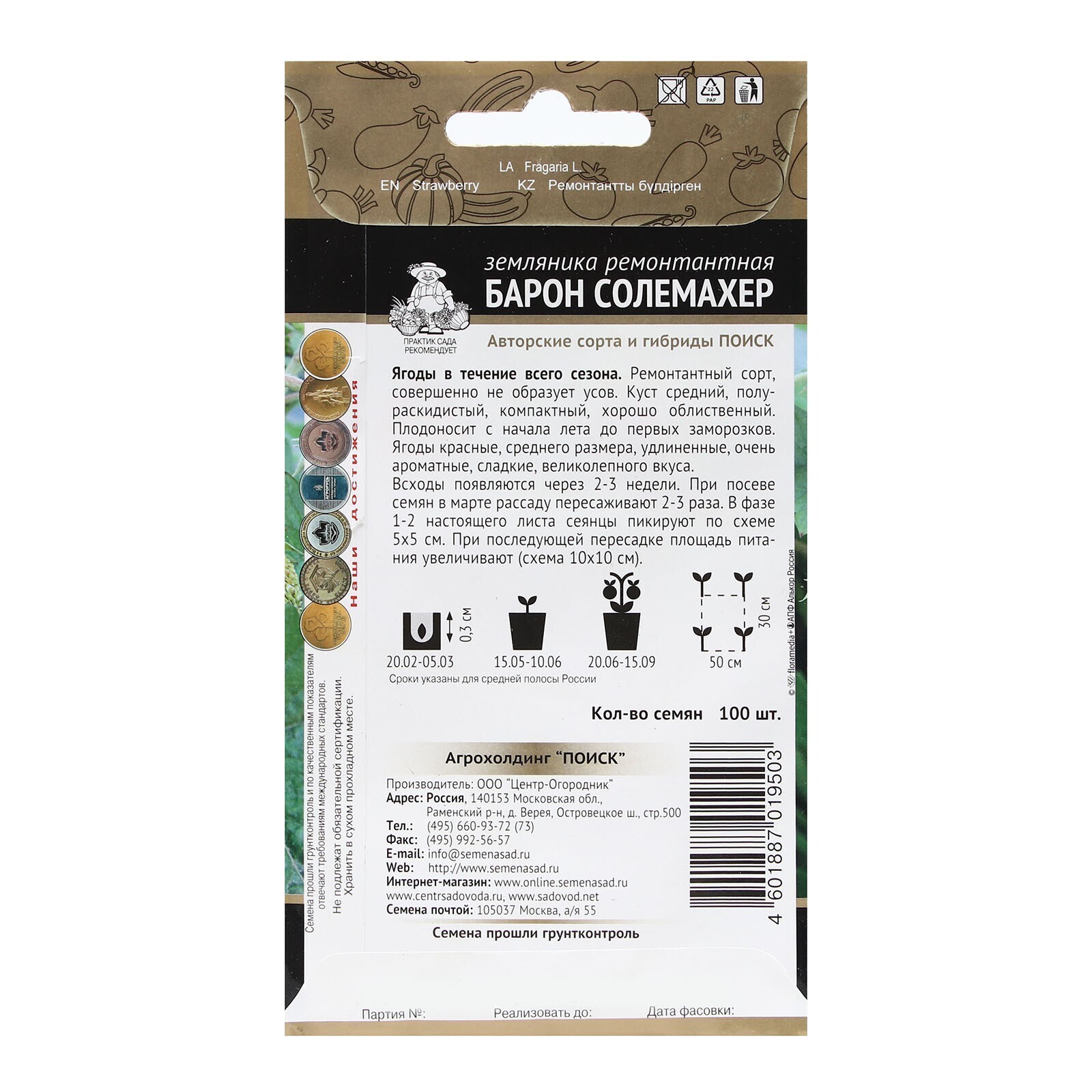 Семена Земляника ремонтантная "Барон Солемахер" 100 шт