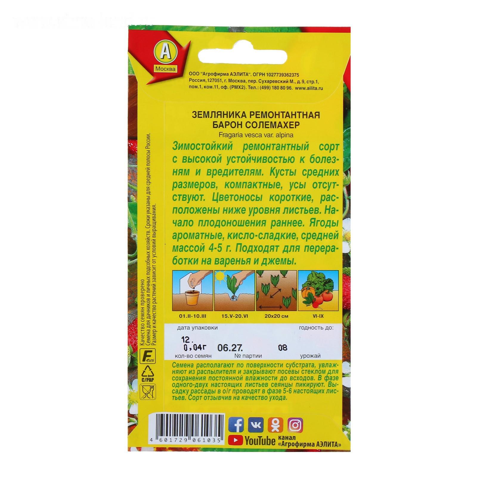 Семена Земляника "Барон Солемахер" ремонтантная, 0,04 г