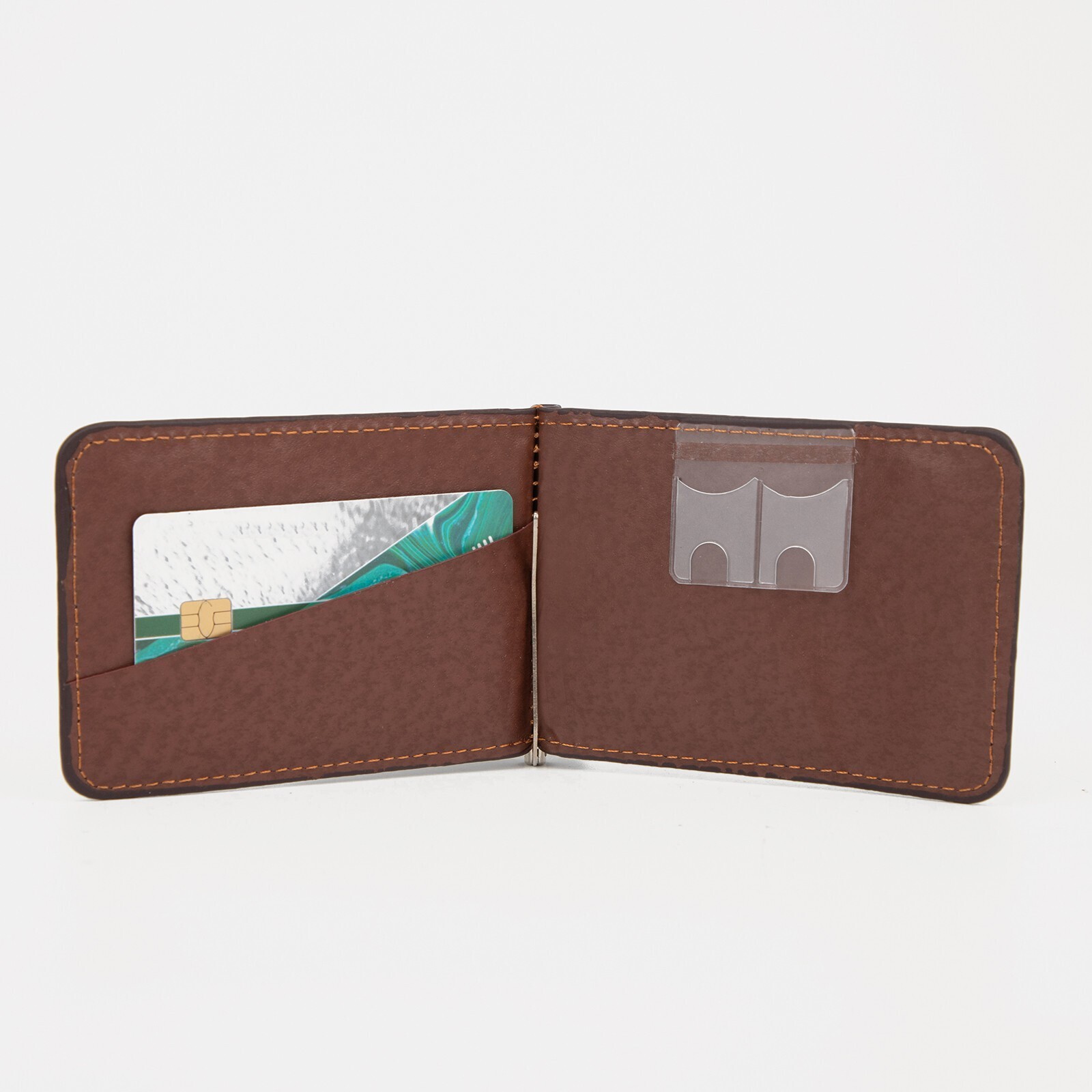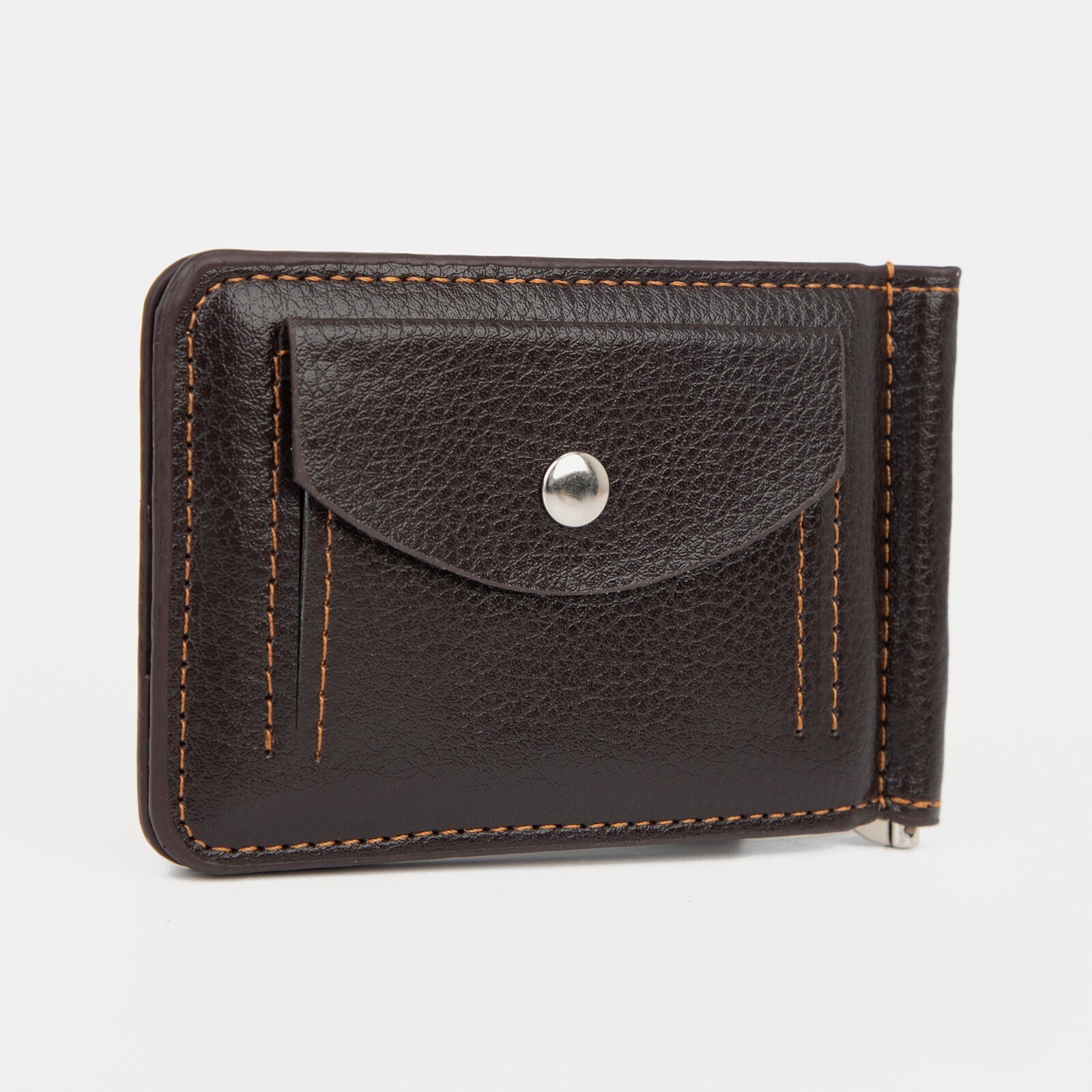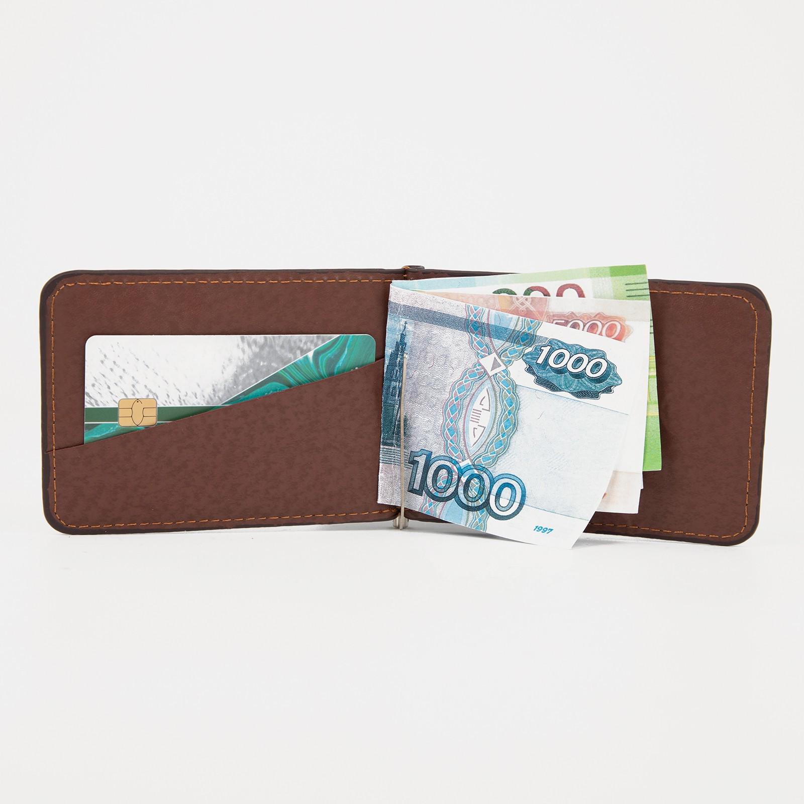 Зажим для купюр на магните, отдел для монет, sim-карт, цвет коричневый