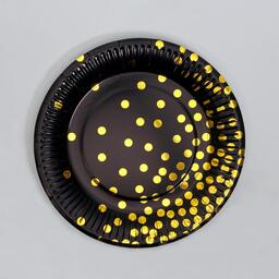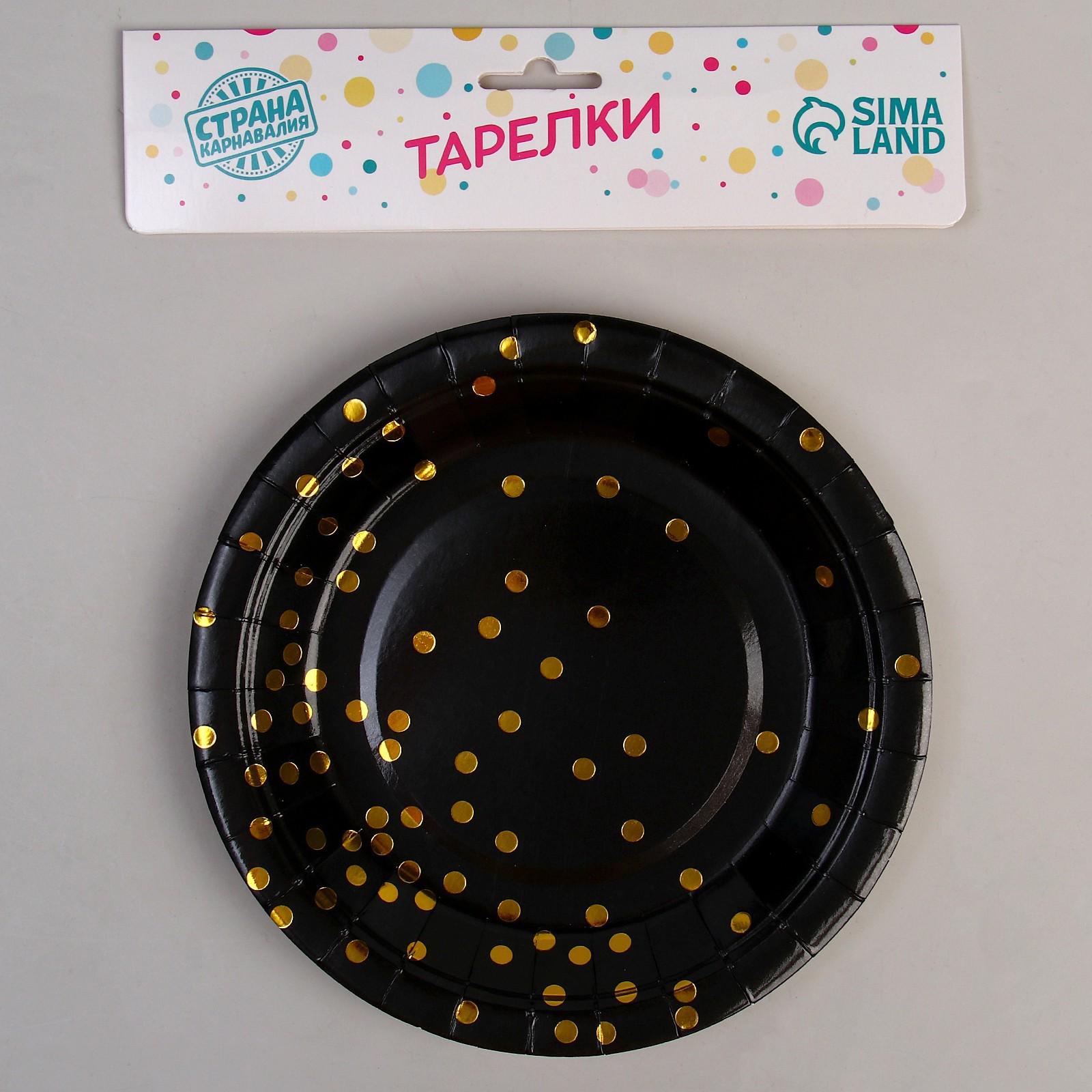 Тарелка бумажная «Конфетти», с тиснением, 18 см, набор 6 шт., цвет чёрный