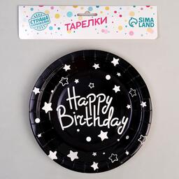 Тарелки бумажные «С днём рождения», набор, 6 шт., цвет чёрный
