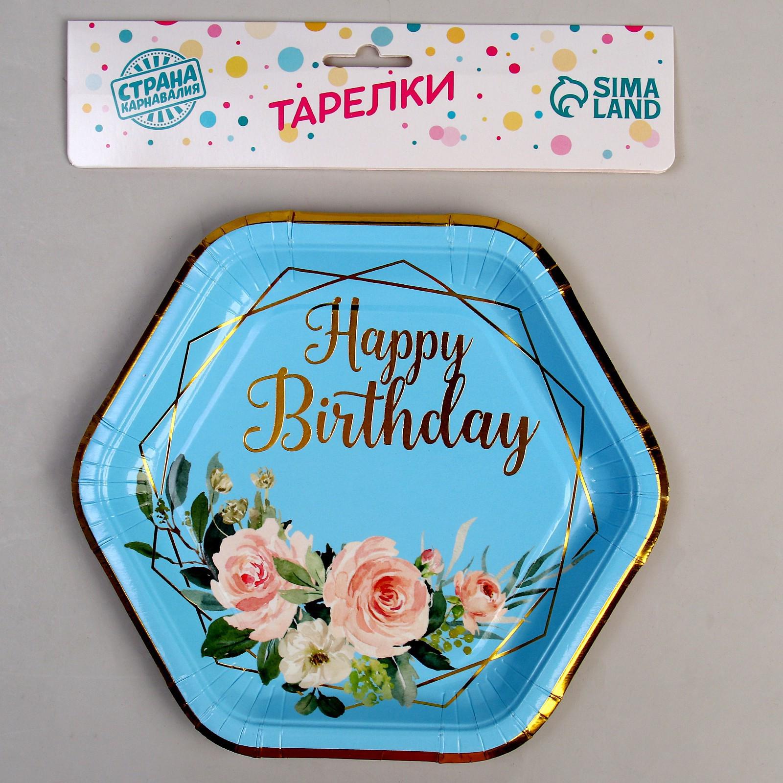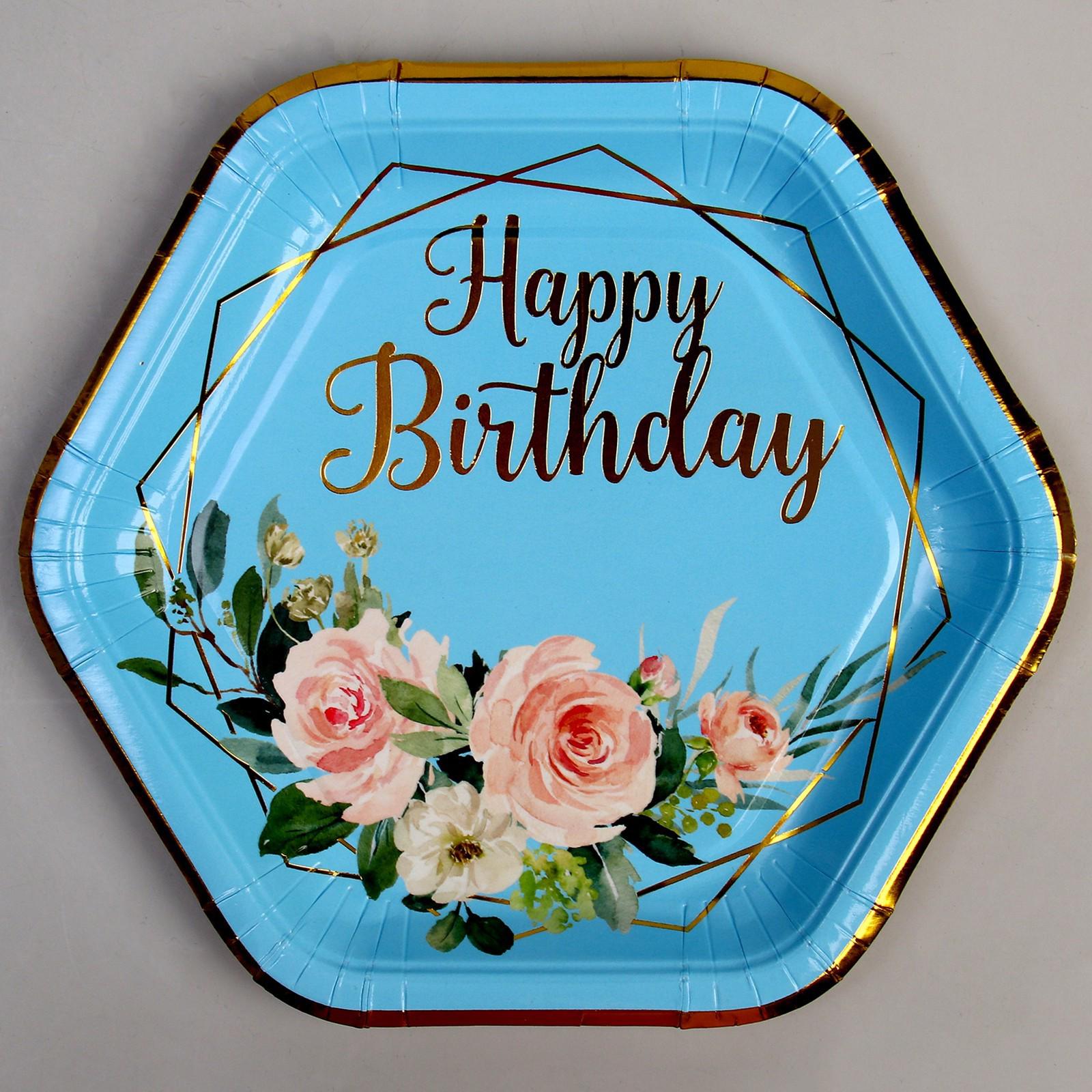 Тарелка бумажная "С днём рождения" набор 6 шт цвет