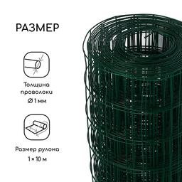 Сетка сварная с ПВХ покрытием 1 х 10 м, ячейка 50 х 50 мм, d=1 мм, металл, Greengo