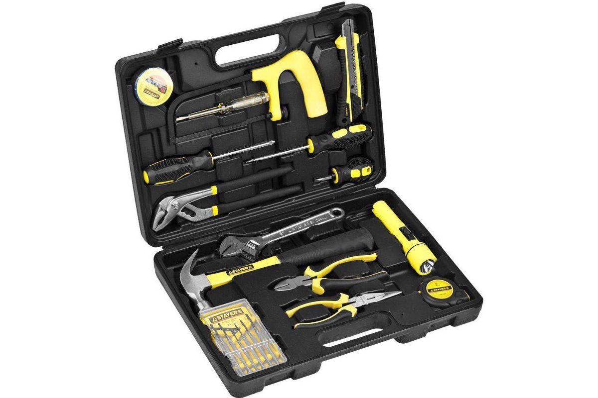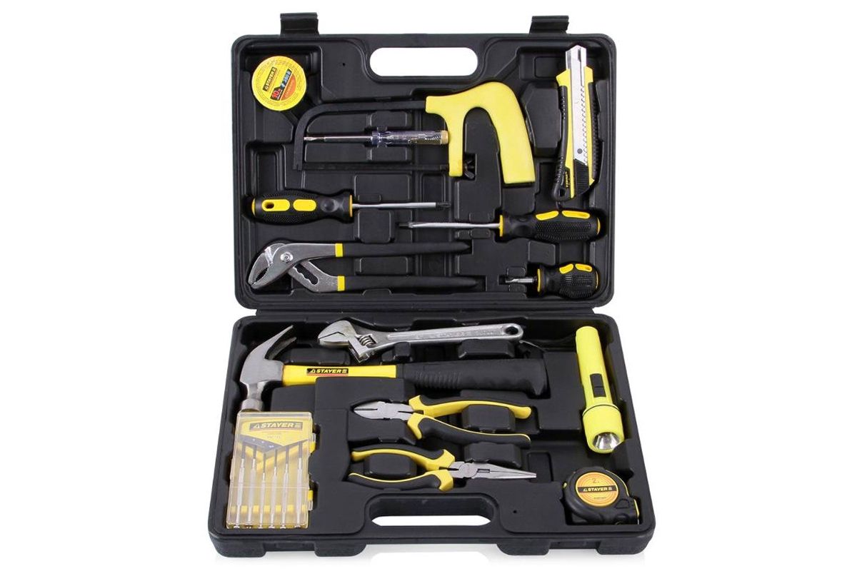STAYER 22052-H15 – универсальный набор инструментов для слесарных и ремонтных работ. Включает в себя 15 предметов. Вес 3 кг. Пригодится для работы на даче, в мастерской или дома.