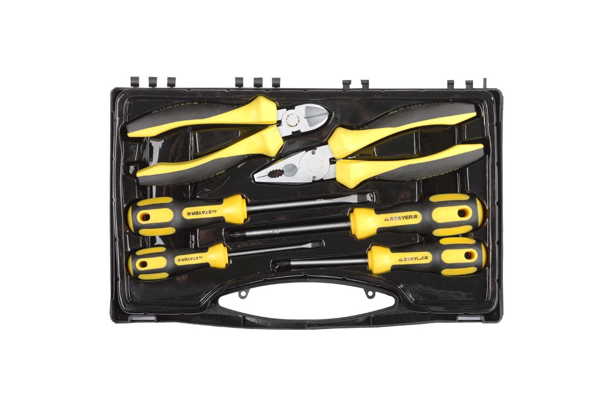 STAYER 2202-H6 — компактный набор инструмента. Используется для домашнего ремонта, монтажа и демонтажа фурнитуры, сборки мебели. Содержит 6 необходимых предметов в легком пластиковом кейсе. Общая масса комплекта — всего 1,1 кг, поэтому его легко брать с собой.