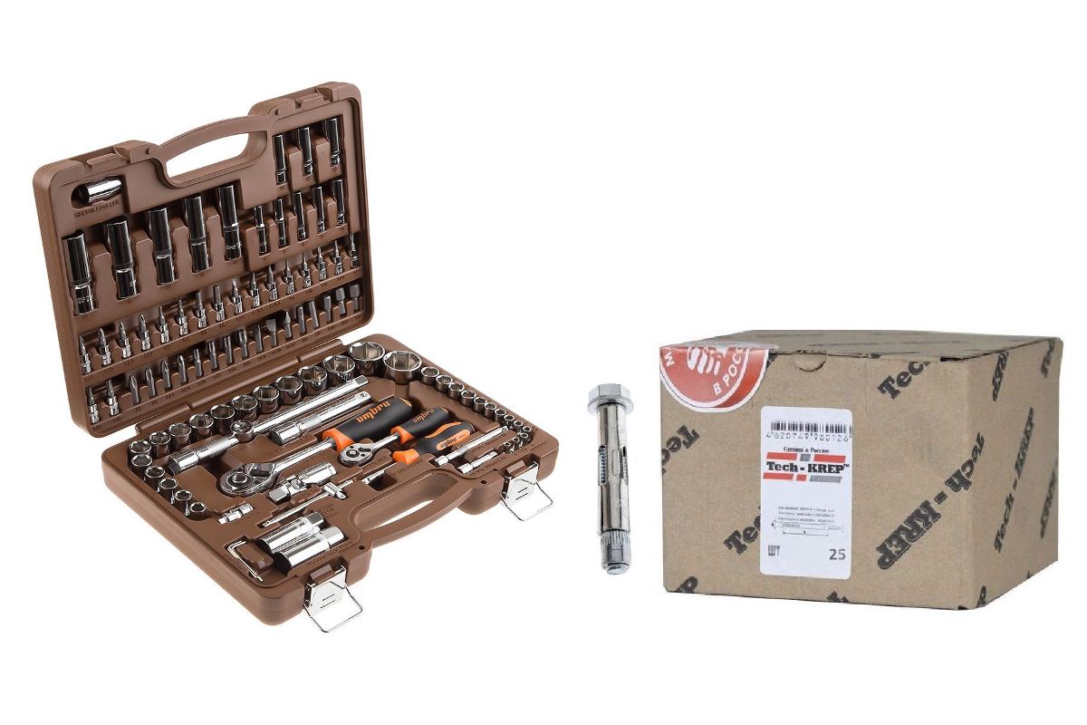 В состав набора входят: Набор инструментов OMBRA ОМТ94S 94 предмета, Анкерный болт TECH-KREP HBM 10х80 - 25 шт (117964)