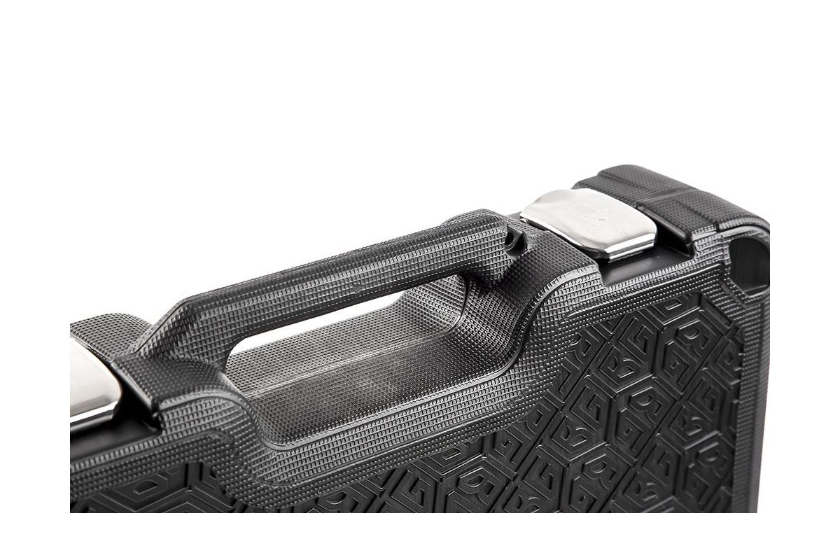 Кейс с удобной ручкой и металлическими замками. Обеспечит надежное хранение и перевозку, ничего не потеряется.