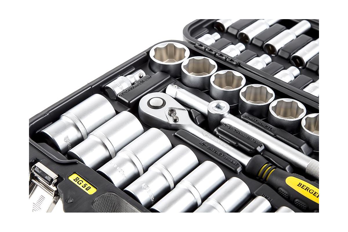 BERGER BG050-12 – набор инструментов для профессионального использования в автослесарных мастерских. Подойдет так же для домашнего ремонта и сборки мебели. Выполнен из легированной хром ванадиевой стали с повышенной устойчивостью к коррозии. Присоединительный размер деталей 1/2”. В набор входит 50 предметов.