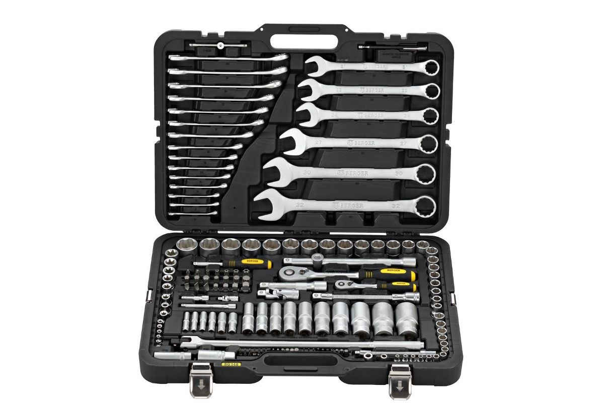 BERGER BG148-1214 – набор инструментов для гаража и мастерской. Пригодится при слесарно-монтажных работах и ремонте автомобиля. В наборе 148 предметов. Все хранятся в пластиковом кейсе.