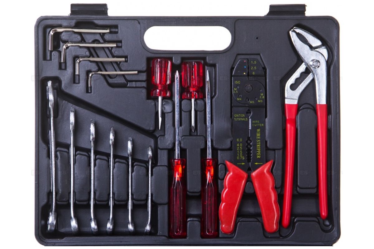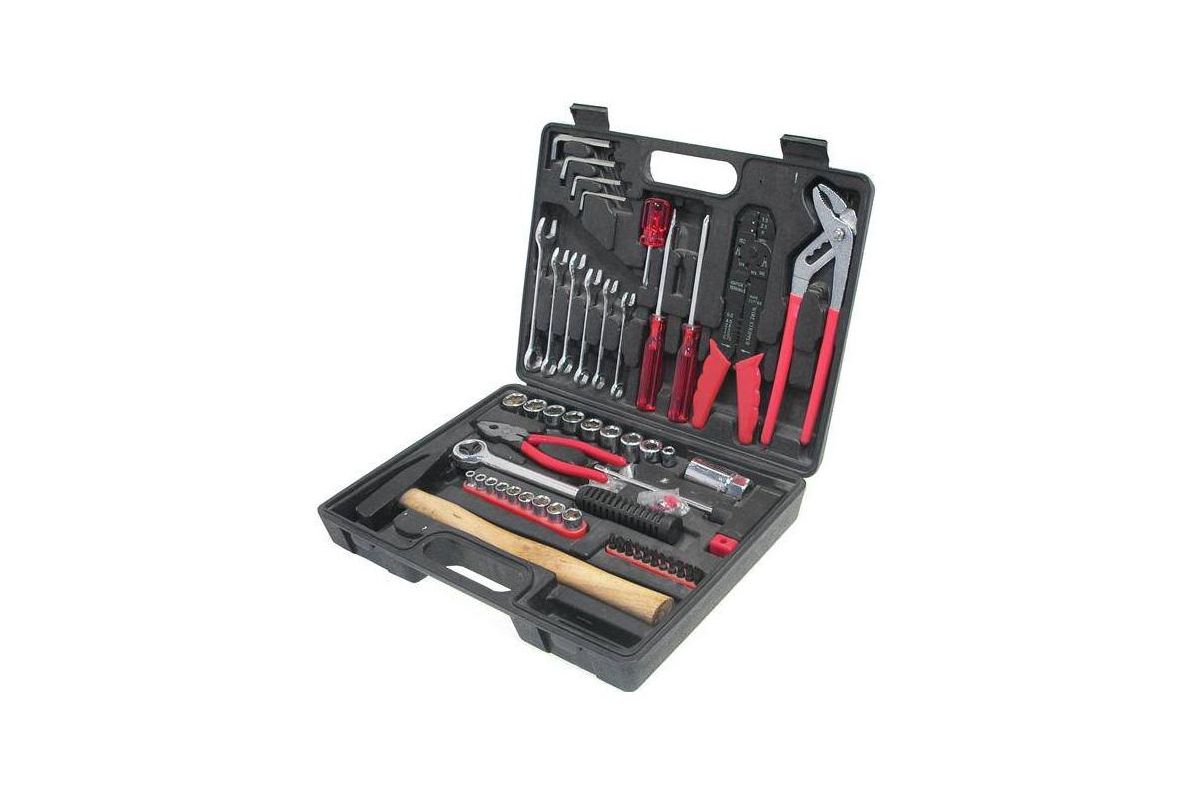 FIT 65101 — бытовой набор инструментов от известного канадского бренда. Включает в себя 100 предметов для проведения ремонтных работ дома, в гараже или мастерской. Металлические части инструментов изготовлены из хромованадиевой стали. Прочный чемодан с защелками и ручкой удобен для транспортировки. Компоновка содержимого в кейсе максимально рациональна: у каждого инструмента своя ячейка. Вес набора — всего 3 кг.