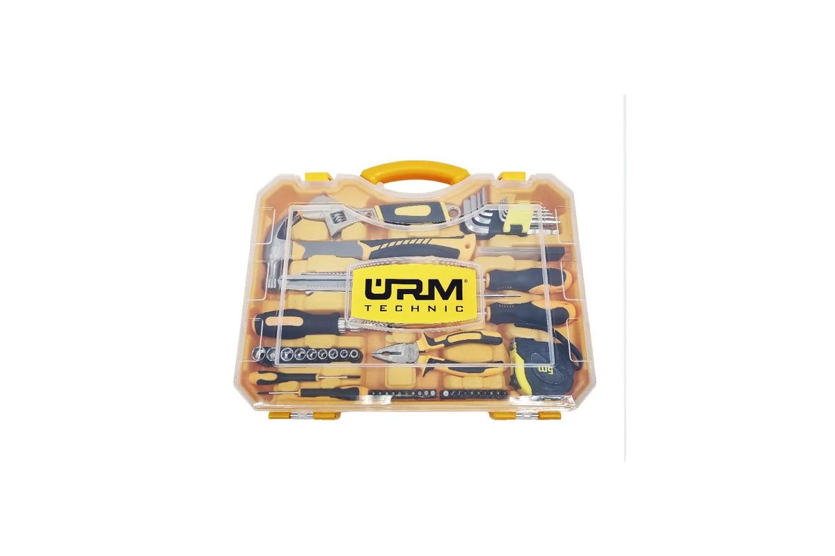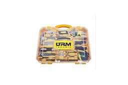 Инструменты URM подходят для использования как в домашних, так и в профессиональных условиях. С их помощью можно легко устранить поломки в доме, в гараже и на даче, совершить сборку и разборку мебели и техники. В наборе собрано все самые популярные и необходимые инструменты для выполнения строительных, ремонтных, отделочных, электромонтажных и сантехнических работ. Набор комплектуется прочным кейсом для легкой переноски и удобного использования. Инструменты изготовлены из высокопрочной хромованадиевой стали, что значительно повышает срок службы инструментов. Набор упакован в компактную пластиковую коробку с откидным верхом.