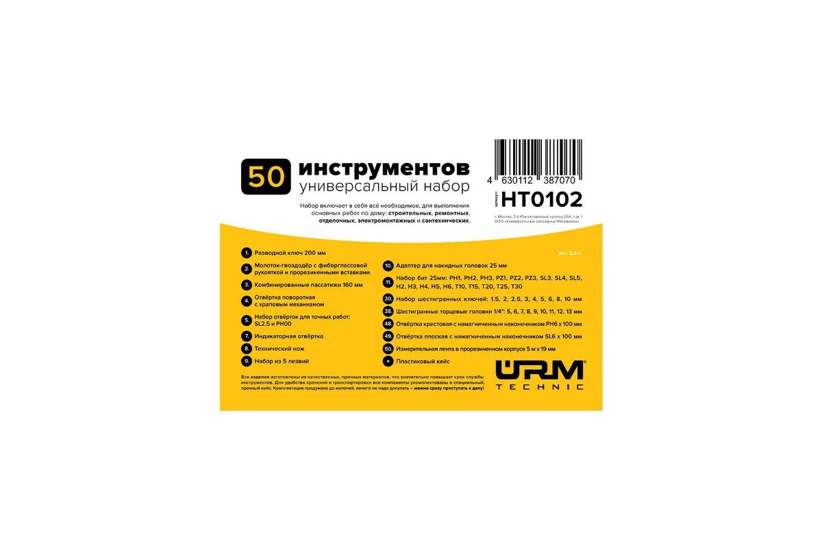 Набор инструментов URM HT0102, 50 предметов
